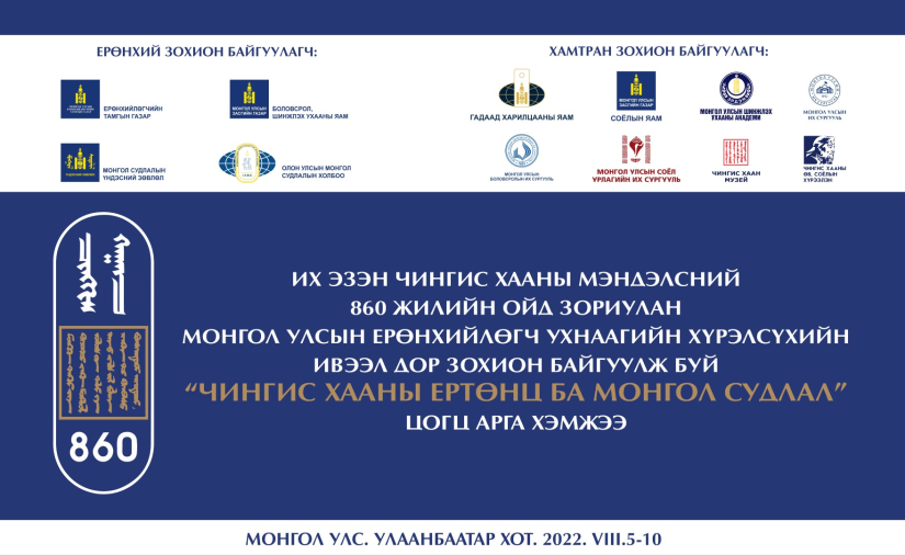 Их Эзэн Чингис хааны мэндэлсний 860 жилийн ойд зориулан Монгол Улсын Ерөнхийлөгч Ухнаагийн Хүрэлсүхийн ивээл дор “Чингис хааны ертөнц ба Монгол судлал” сэдэвт цогц арга хэмжээг энэ оны 8 дугаар сарын 5-10-нд Улаанбаатар хотноо зохион байгуулах гэж байна.