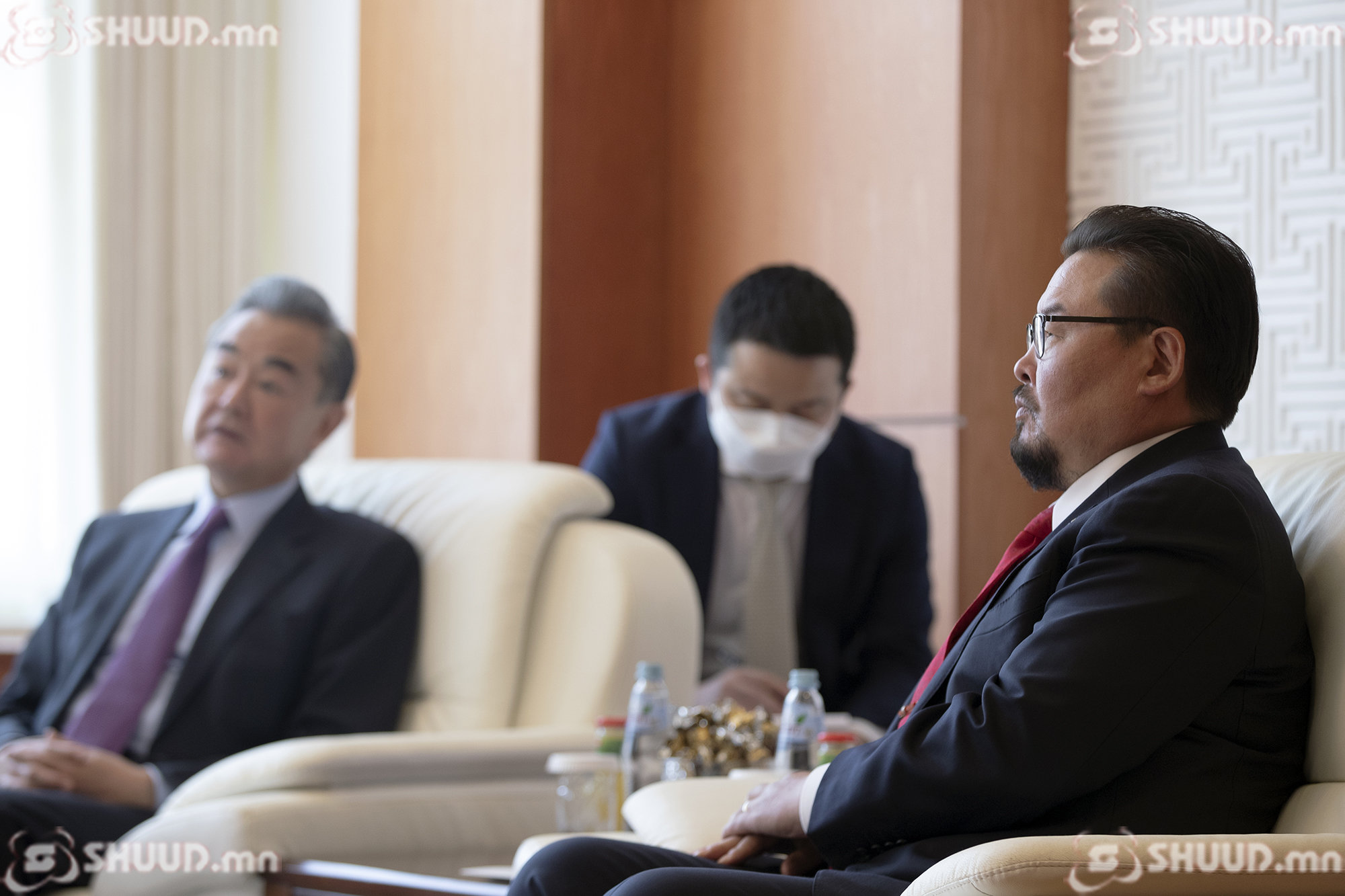 БНХАУ-ын Төрийн зөвлөлийн гишүүн, Гадаад хэргийн сайд Ван И Улсын Их Хурлын даргатай уулзах завшаан тохиосонд баяртай байгаагаа илэрхийлээд, Бүх Хятадын Ардын Төлөөлөгчдийн Их Хурлын Байнгын Хорооны дарга Ли Жаншү-гийн мэндчилгээг уламжлав.