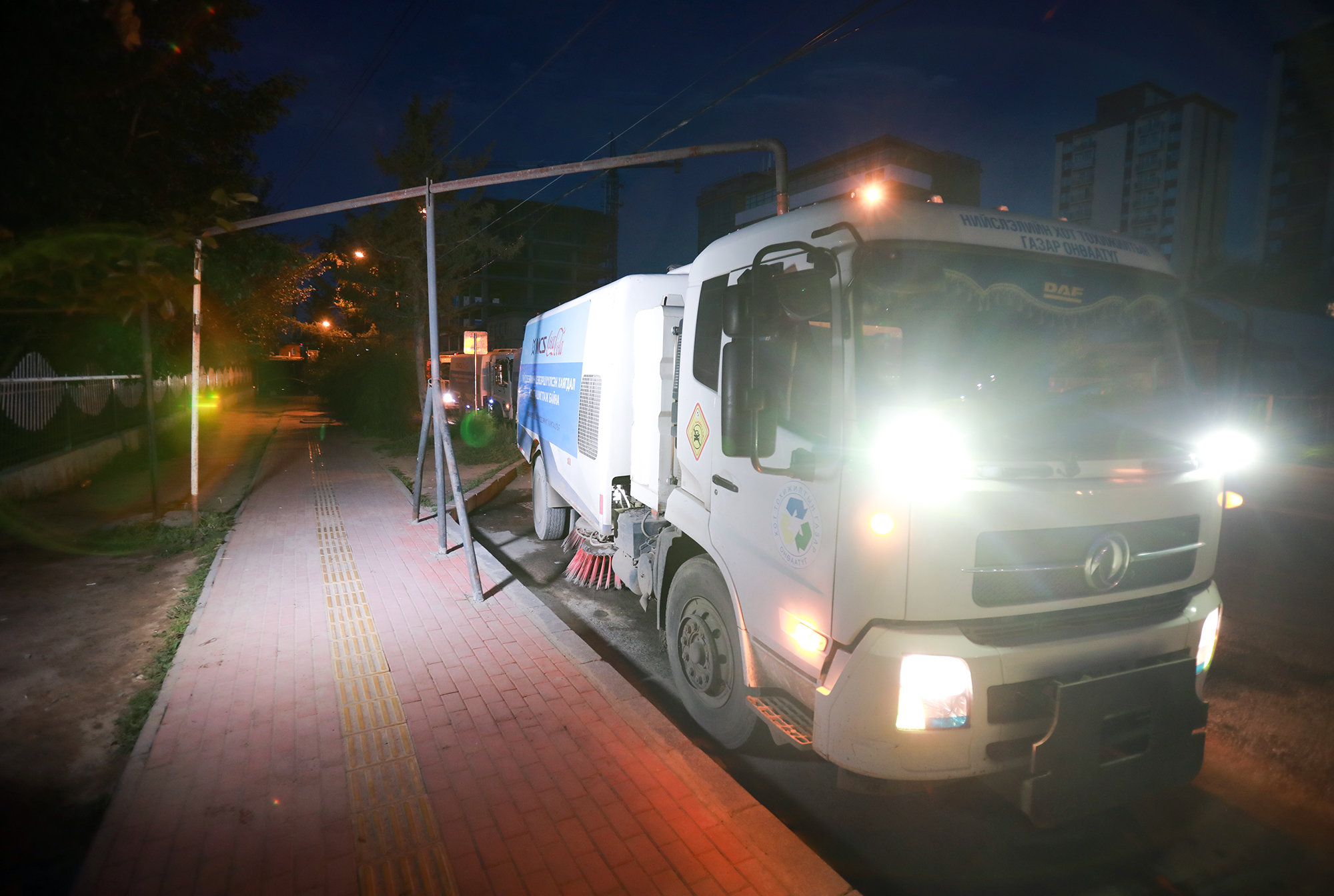 -Тээврийн хэрэгслийн хөдөлгөөн сийрэг, замын ачаалал бага байх үед цэвэрлэгээ хийх болон хог тээвэрлэдэг онцлогтой. Цэвэрлэгээ үйлчилгээ үүрээр 04:00 цагаас эхэлдэг. Зам талбайн үйлчлэгч нар 05:00 цагаас ажлаа эхэлдэг. Өнөөдрийн тухайд шүүрт машинууд хотын алслагдсан дүүргийн тууш замууд буюу Толгойт, Баянхошуу, Тахилт, Моносын уулзвар, Дүнжингаравын замд ажиллаж байгаа гэлээ.