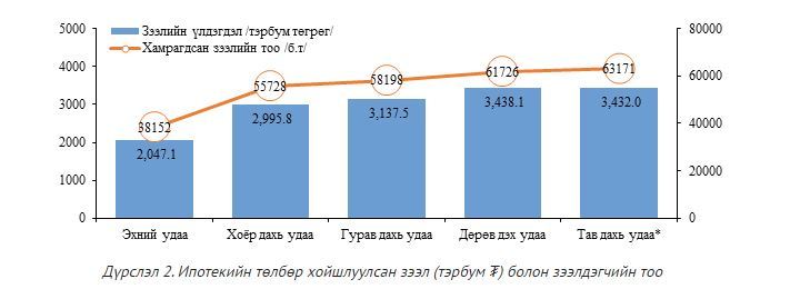 Харин энэ оны эхний 7 сард нийт 355 орчим тэрбум төгрөгийн хөнгөлөлттэй хүүтэй ипотекийн зээлийг 4.5 мянган өрхөд Монголбанк болон банкуудын эх үүсвэрээр олгоод байна. Мөн 2022 оны 8 дугаар сард 71.7 тэрбум төгрөгийн хөтөлбөрийн зээлийг олгохоор ажиллаж байна.