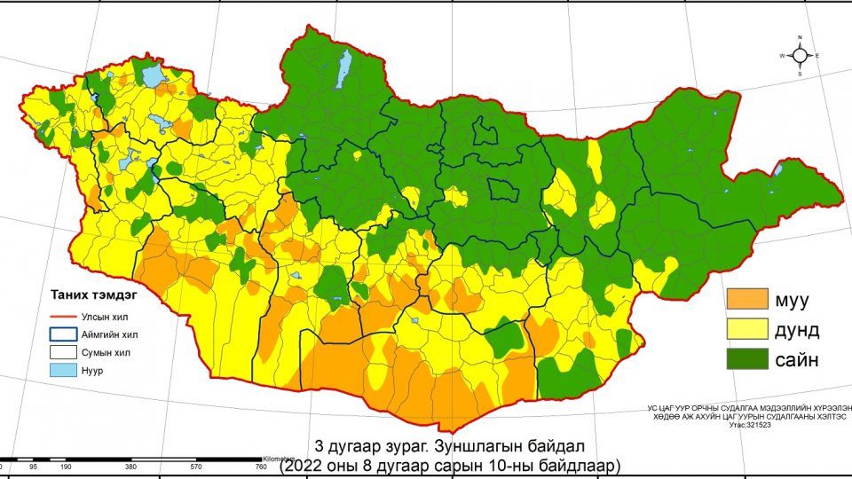 Тодруулбал, Сэлэнгэ, Орхон, Дархан-Уул, Говьсүмбэр, Дорнодын нийт, Архангай, Хөвсгөл, Булган, Төв, Хэнтий, Сүхбаатарын ихэнх, Баян-Өлгий, Увс, Ховд, Говь-Алтай, Баянхонгор, Өвөрхангай, Дундговь, Дорноговийн зарим, Завхан, Өмнөговийн ганц нэг сумдын нутгаар сайн, Увс, Говь-Алтай, Баянхонгор, Өвөрхангай, Өмнөговийн зарим, Баян-Өлгий, Ховд, Завхан, Дундговь, Дорноговийн ганц нэг сумдын нутгаар муу байна.