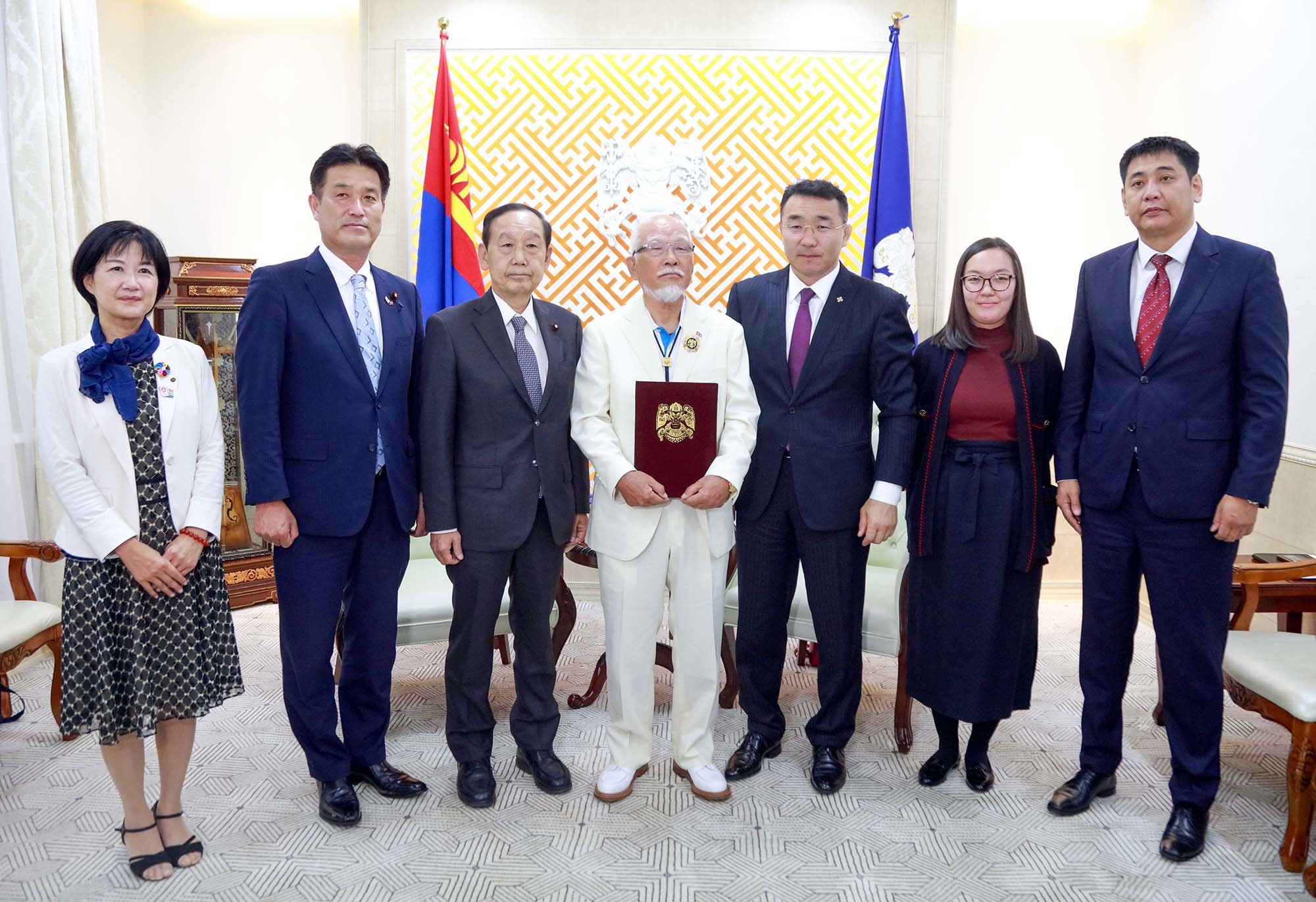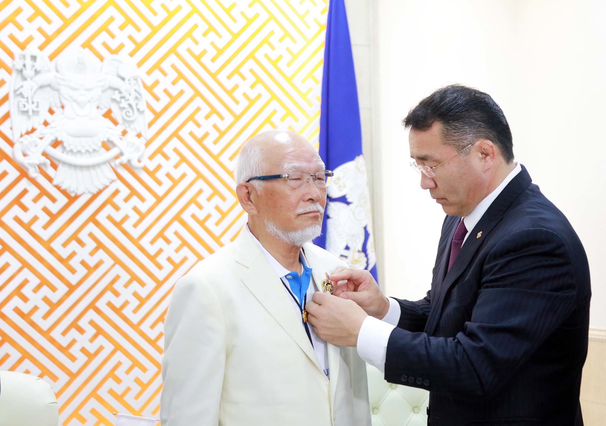 Уулзалтын үеэр Монгол Улс, Япон Улсын хооронд дипломат харилцаа тогтоосны 50 жилийн ойг тохиолдуулан Монгол, Японы харилцааг өргөжүүлэх, соёлын хамтын ажиллагааг бэхжүүлэх чиглэлд Өргөмжит консул Каваүчи Широгийн 2010 оноос хойш оруулсан үнэтэй хувь нэмрийг үнэлэн нийслэлийн дээд шагнал Хангарди одонгоор шагнасан юм.