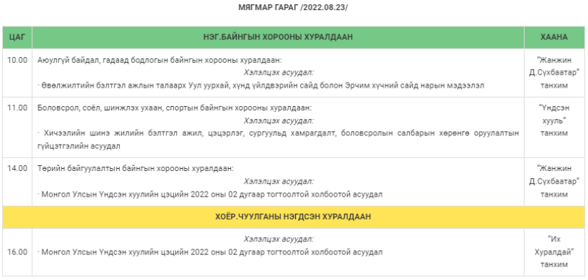 Наймдугаар сарын 23 буюу өнөөдөр болох үйл явдлын тойм: