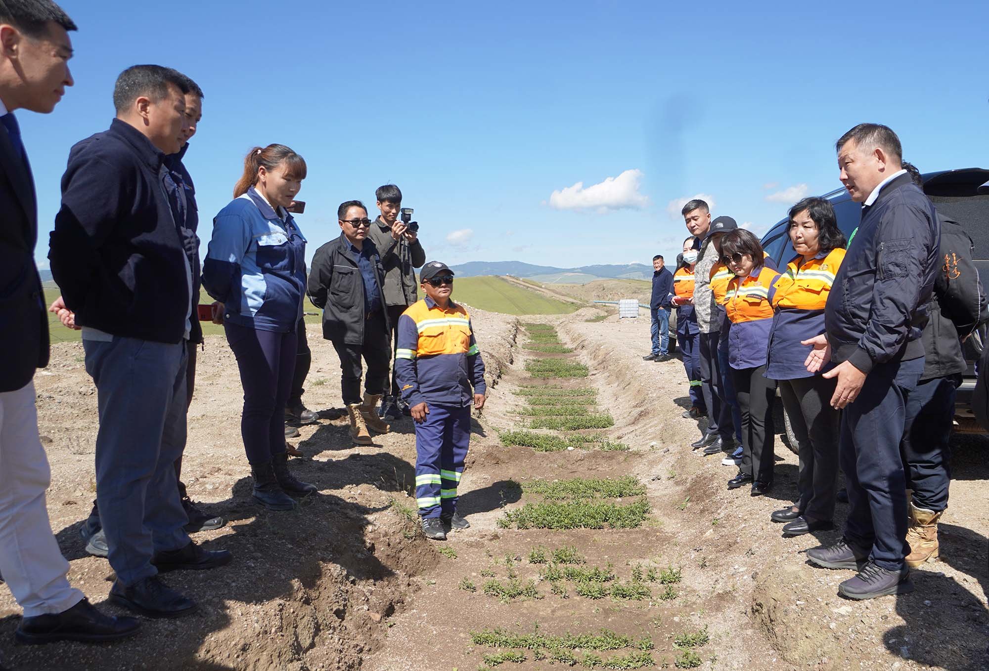 Эрдэнэт үйлдвэрийн хаягдлын аж ахуйг тойруулан өнгөрсөн хавар үрээр тарьсан талбай, мөн бэлэн худалдаж авсан мөчрөөр тарьсан ч ургаагүй талбай, улиасны стандарт мөчир бэлтгэх, Уул уурхай-100 ланд арт төвийн үйл ажиллагааг Зам, тээврийн сайд болон төмөр замын байгууллагуудын удирдлагуудад танилцуулж тус бүрийн тухай мэдээлэл өгөв.
