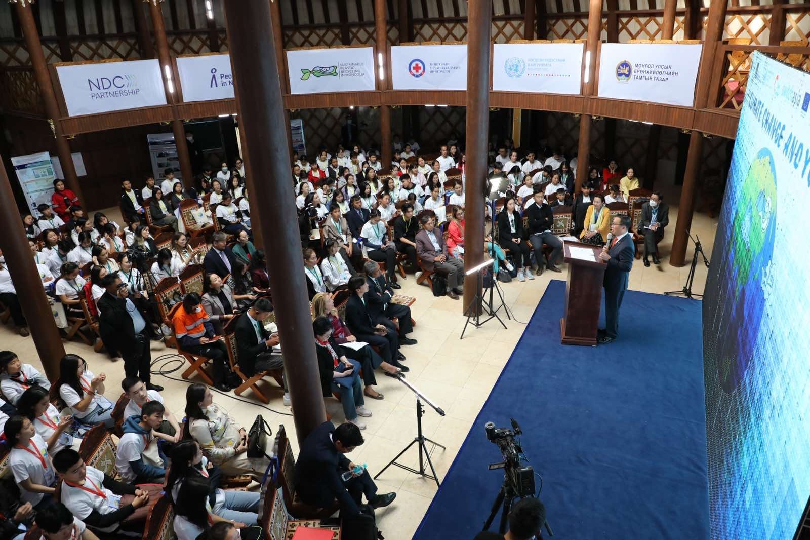 Тус арга хэмжээнд нийслэл, орон нутаг, олон улсын 14-18 насны төлөөлөл болсон 500 гаруй хүүхэд, залуус танхимаар болон цахимаар оролцож байгаа юм. Арга хэмжээг нээж, Байгаль орчин, аялал жуулчлалын сайд Б.Бат-Эрдэнэ үг хэлсэн юм. Түүнчлэн Монгол Улсын Ерөнхийлөгчийн Байгаль орчин, ногоон хөгжлийн бодлогын зөвлөх Н.Батхүү МУ-ын Ерөнхийлөгч У.Хүрэлсүхийн илгээлтийг уншиж, танилцууллаа.
