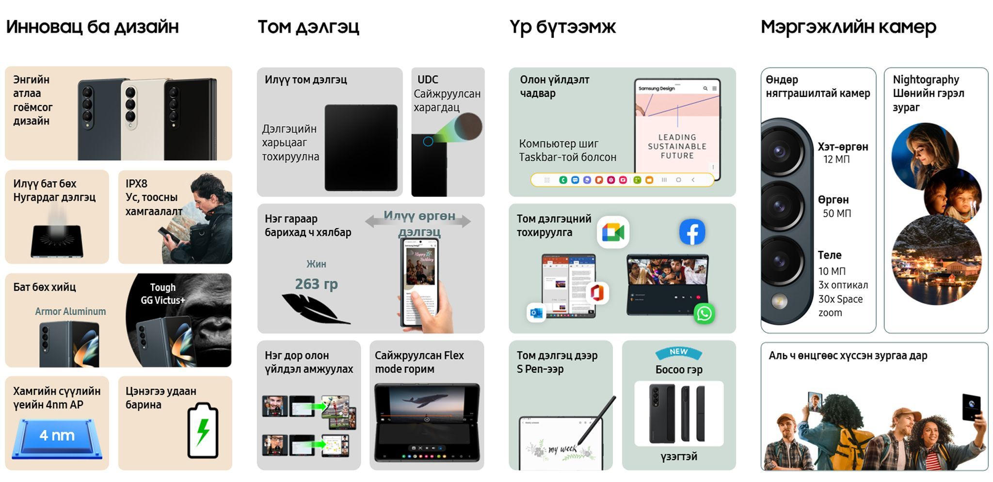 Galaxy Z Fold4 утасны онцлох үзүүлэлтүүд: