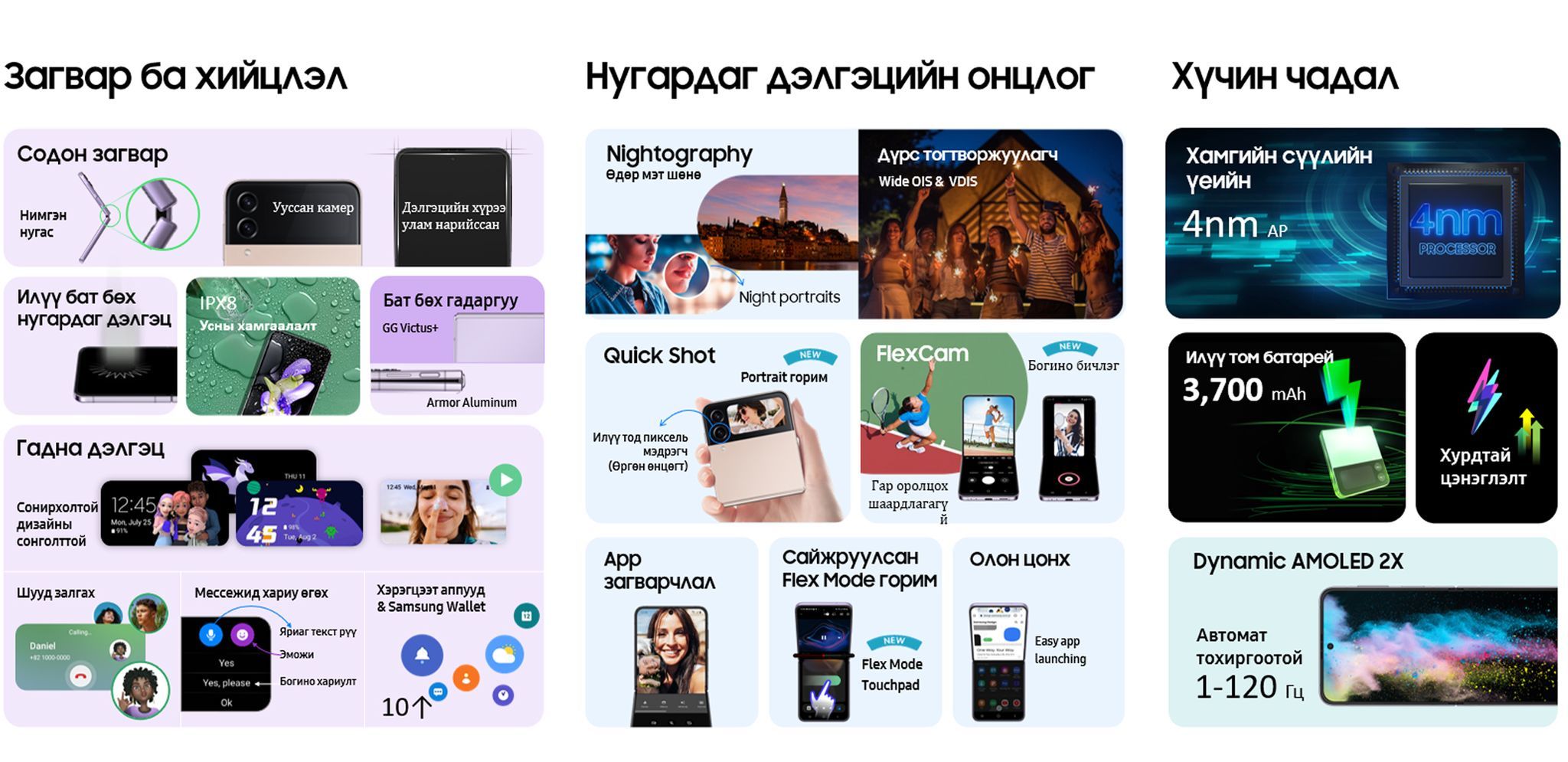 Galaxy Z Flip4 утасны онцлох үзүүлэлтүүд: