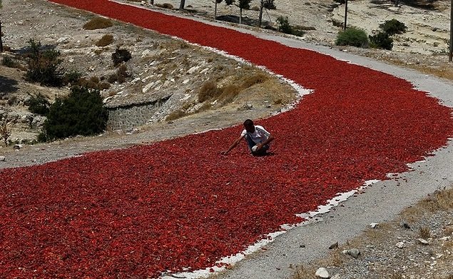 6. Туркэд улаан чинжүү хатааж буй нь