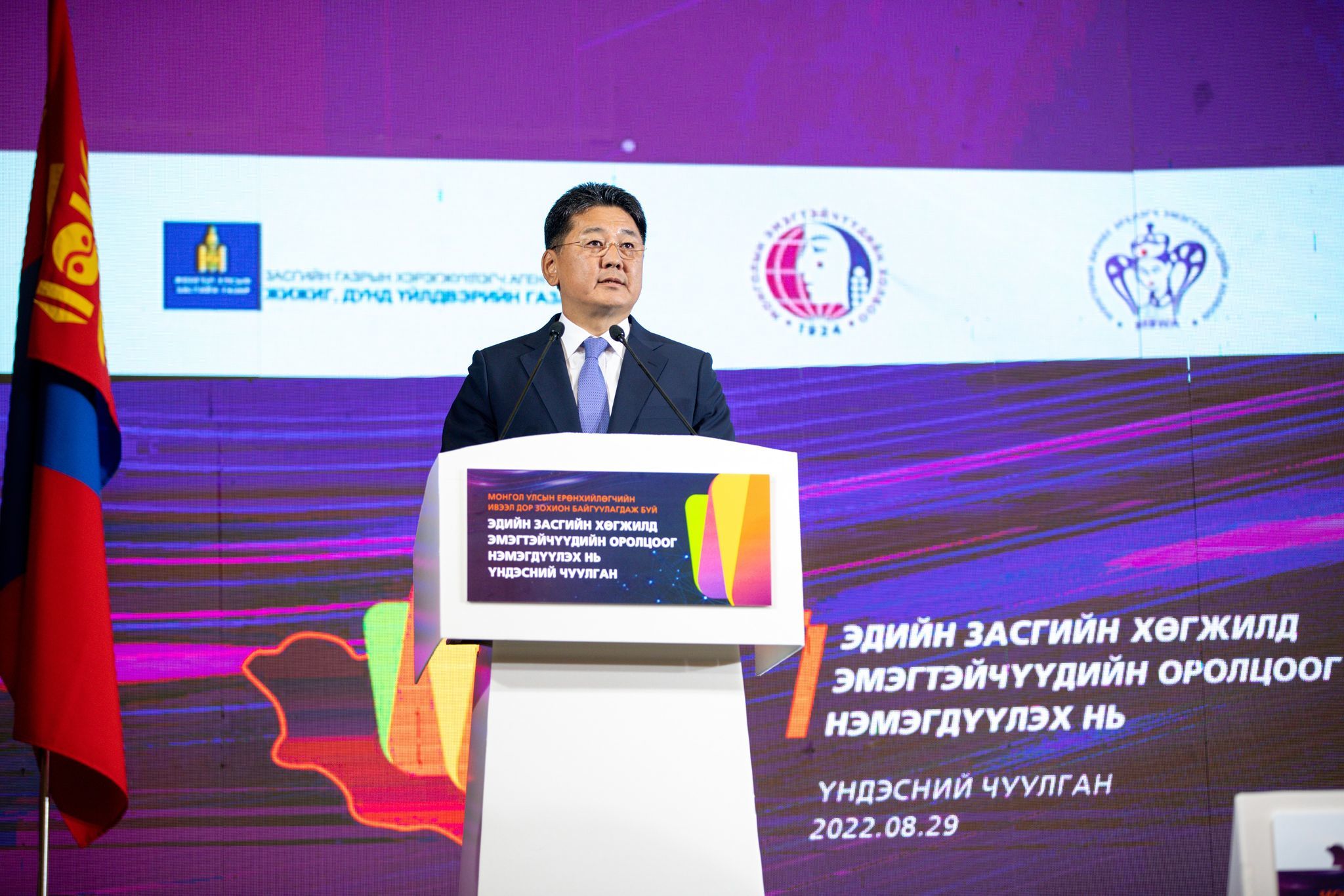 Монгол Улсын Ерөнхийлөгч Ухнаагийн Хүрэлсүхийн ивээл дор “Эдийн засгийн хөгжилд эмэгтэйчүүдийн оролцоог нэмэгдүүлэх нь” үндэсний чуулган Төрийн ордонд болж байна.