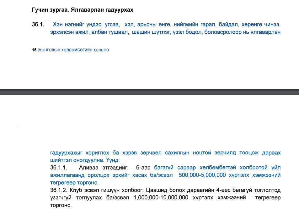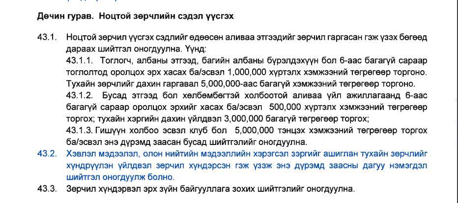 Хавсралтаар МХБХ-ны Сахилгын дүрмийн 36, 42, 43, 54 дүгээр зүйлд заасан заалтуудыг танилцуулж байна.