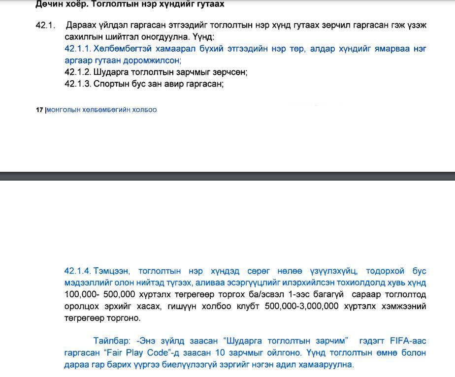 Монголын Хөлбөмбөгийн Холбооны ёс зүйн хороо хуралдаж дараах шийдвэрийг гаргасан байна.
