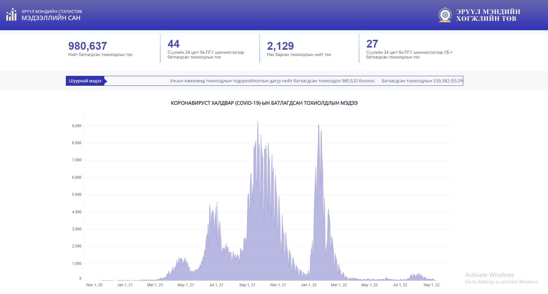Нийт батлагдсан тохиолдлын 539 382 (55.0%) нь Улаанбаатар хотод бүртгэгдсэн байна. Өнөөдрийн байдлаар Улаанбаатар хот болон 21 аймагт халдвараар өвчидсөн 327 хүн эмнэлэгт хэвтэн эмчлүүлж байна.