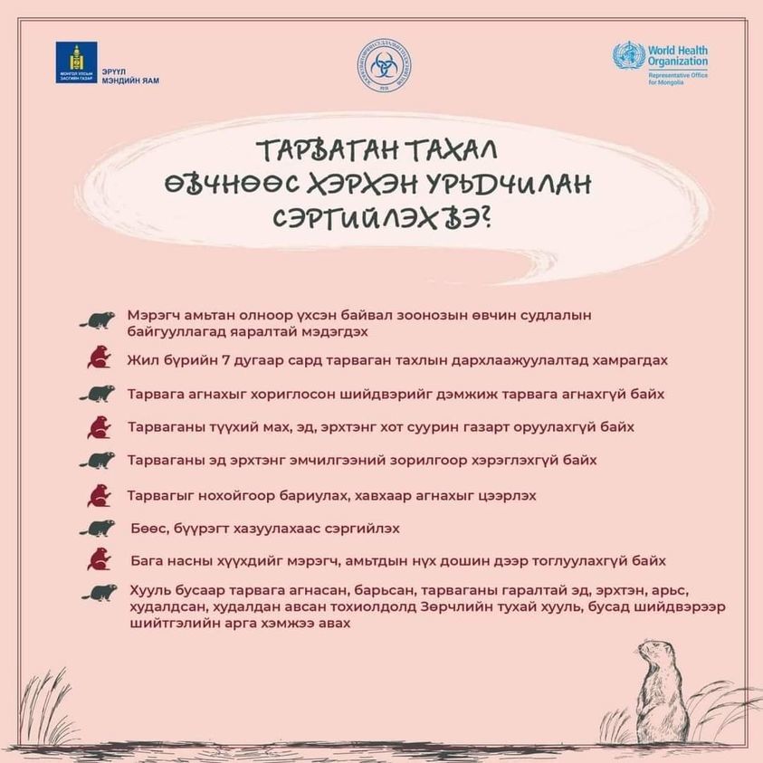 Ховд аймагт тарваган тахлын нэг тохиолдол бүртгэгдлээ