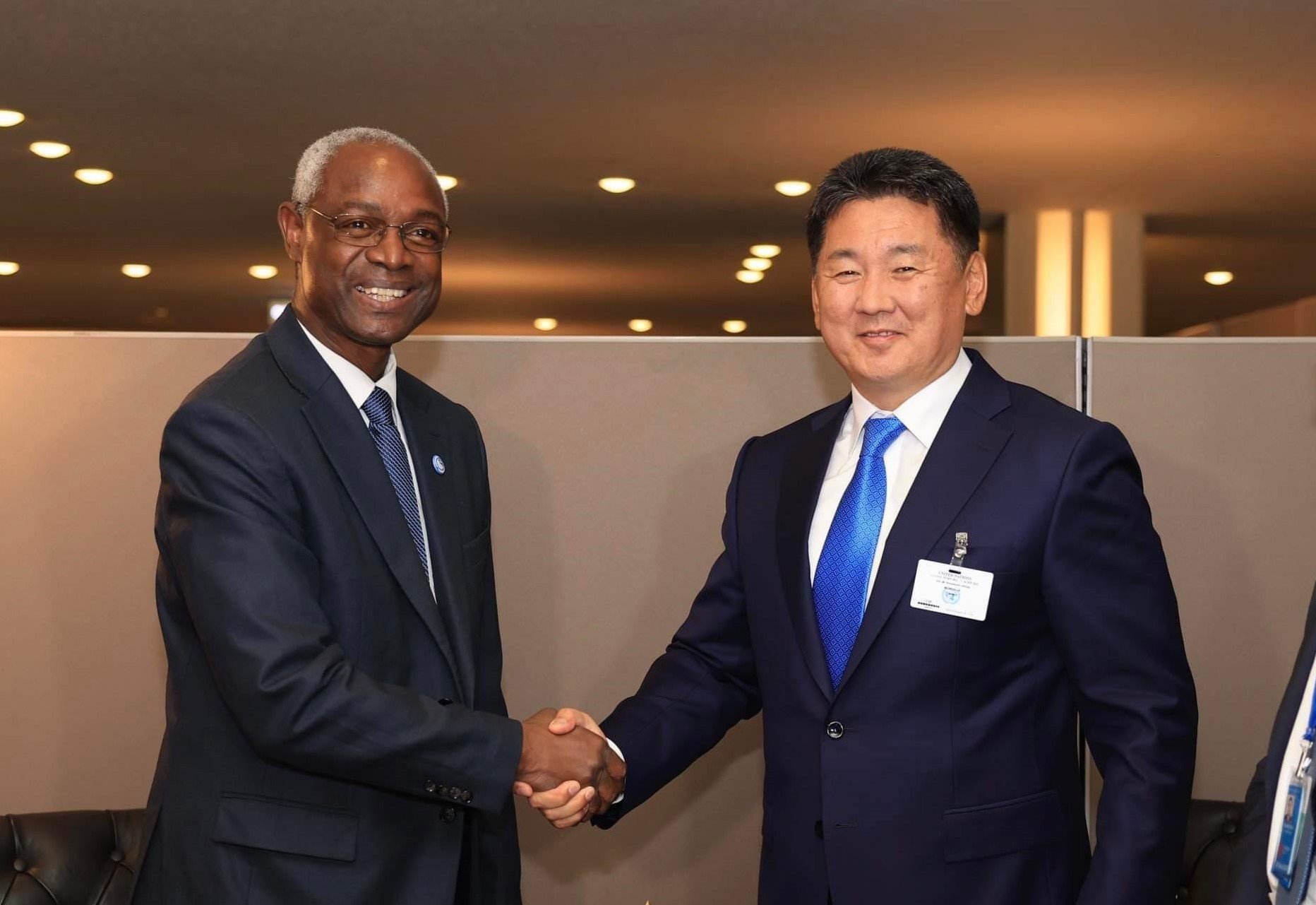 Монгол Улсын Ерөнхийлөгч Ухнаагийн Хүрэлсүх НҮБ-ын Ерөнхий нарийн бичгийн даргын орлогч бөгөөд Цөлжилттэй тэмцэх конвенцын Гүйцэтгэх нарийн бичгийн дарга Ибрахим Тио-той уулзлаа.