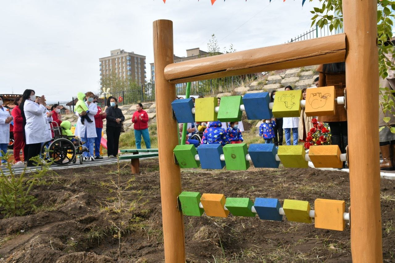 Мөн тус сувилалд хандивлагчийн дэмжлэгээр барьсан тоглоомын талбайн нээлтэд оролцлоо. Энэ талбай нь эко, аюулгүй, өргөсгүй модоор бүтээгдсэн тоглоомын тус сувилалд эмчлүүлж буй суурь өвчтэй хүүхдүүд болон сувиллаар үйлчлүүлж буй хүүхдүүдийн биеийн бас сэтгэхүйн хөгжилд онцгой хувь нэмэртэй юм.