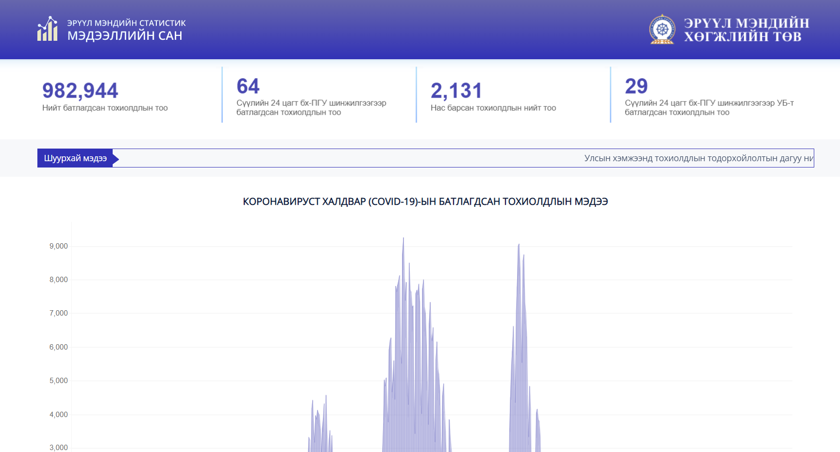 Үүний 29 нь Улаанбаатарт, 35 нь орон нутагт бүртгэгдэв. Ингэснээр улсын хэмжээнд нийт батлагдсан тохиолдол 982 944 боллоо.