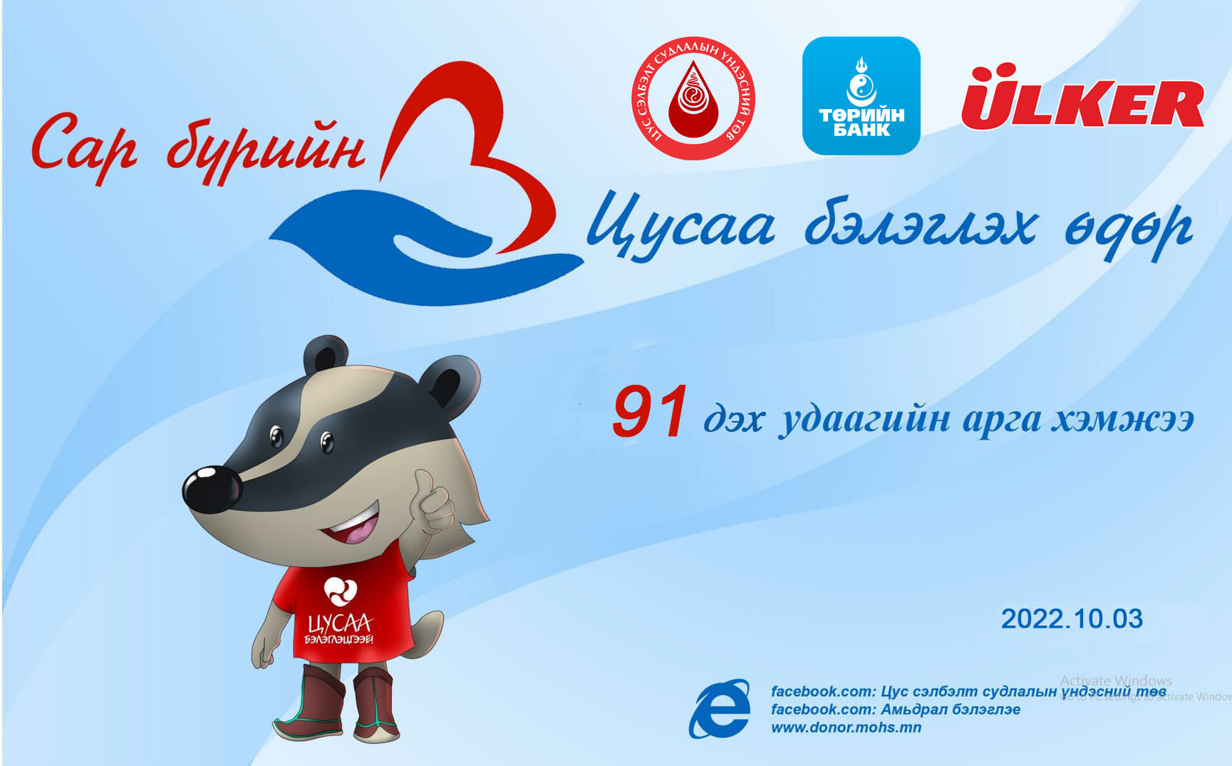 Сайн дурын, авлагагүй, цусны донорын эгнээг өргөжүүлэх, цусны донорын үйлсийг сурталчлах, тэднийг алдаршуулж урамшуулах зорилго бүхий Сар бүрийн 3-ны өдрийг “Цусаа бэлэглэх өдөр” болгосон юм.