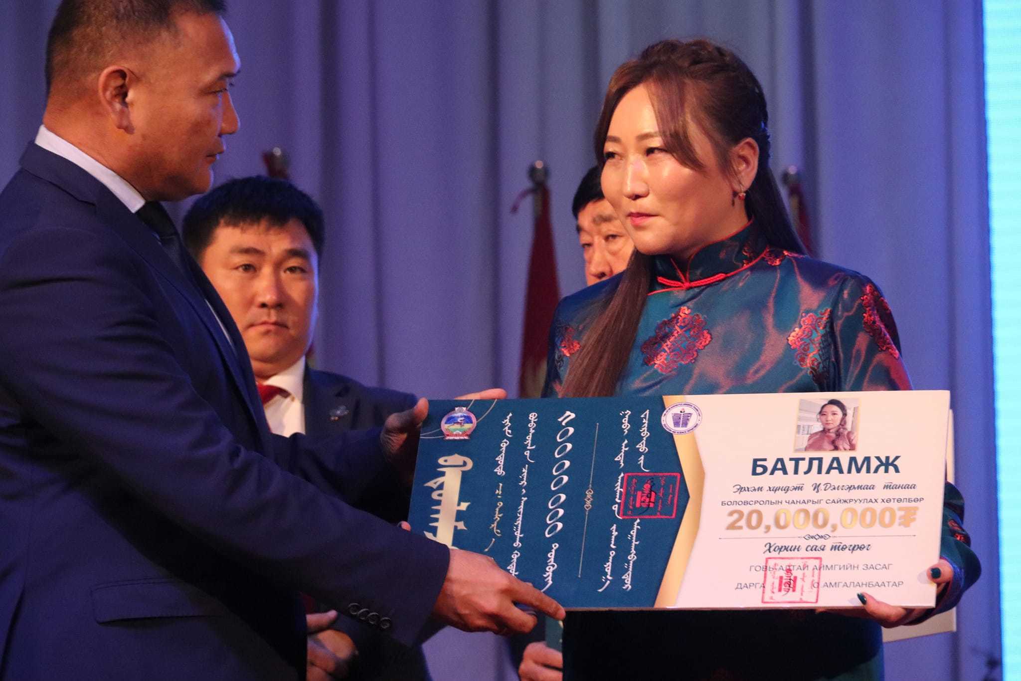 Элсэлтийн ерөнхий шалгалтын дундаж оноогоор хамгийн өндөр шалгагдсан Есөнбулаг сумын лаборатори нэгдүгээр сургуулийн нийгмийн тухай мэдлэг хичээлийн багш Б.Түвдэндорж, Ч.Дэлгэрмаа, “Хантайшир – Эрдэм” цогцолбор сургуулийн физикийн багш Л.Нямбаяр нарт тус бүр 20,000,000 төгрөгийн мөнгөн шагнал олголоо. Мөн хамгийн олон сурагч бэлтгэн оролцуулж нэг сурагч нь 100 хувийн гүйцэтгэлтэй шалгагдсан 1 дүгээр сургуулийн математикийн багш Н.Доржмаад 7,000,000 төгрөг, бэлтгэсэн сурагч нь 800 оноо авсан 1 дүгээр сургуулийн нийгмийн ухааны багш Ү.Баярмааг 5,000,000 төгрөгөөр урамшуулсан юм.