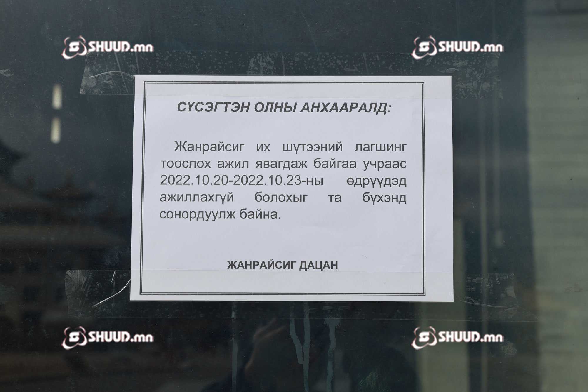 Гандантэгчилэн хийдийн гол шүтээн Мэгжид Жанрайсиг бурхныг цэвэрлэж байна. Мэгжид Жанрайсиг бурхны дүрийг 1996 оны 10-р сарын 27-нд залсан юм. Ийнхүү бурхан залсан өдрийг угтан лагшинг тоослож байгаа аж. Энэ ажлын хүрээнд энэ сарын 20-23 өдөр хүртэл Гандантэгчилэн хийдийн гол шүтээний хэсэг ажиллахгүй гэдгийг мэдэгджээ