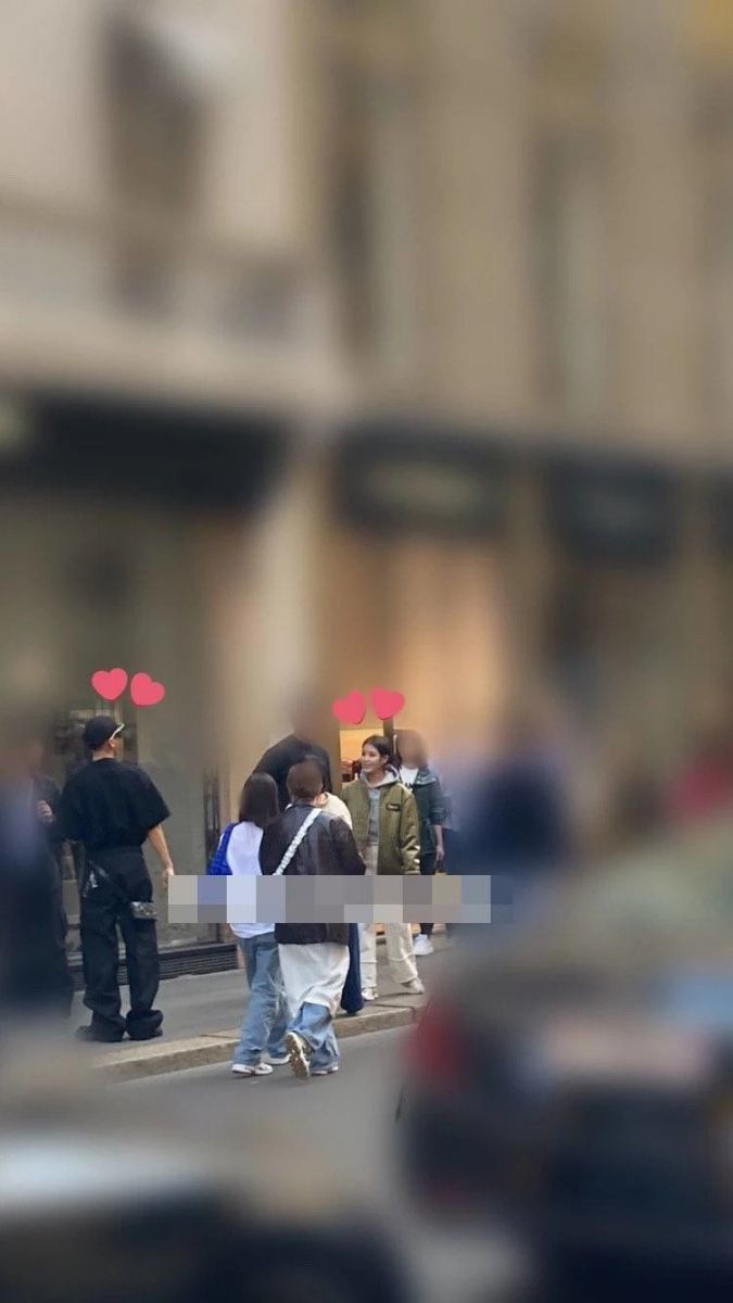 Тэд нэгэнтэйгээ дотно мэндэлж буй нь зурагт буусан байх бөгөөд IU энэ үеэр Миланд зохион байгуулагдсан "Gucci fashion Week"-д оролцохоор ирээд байжээ.