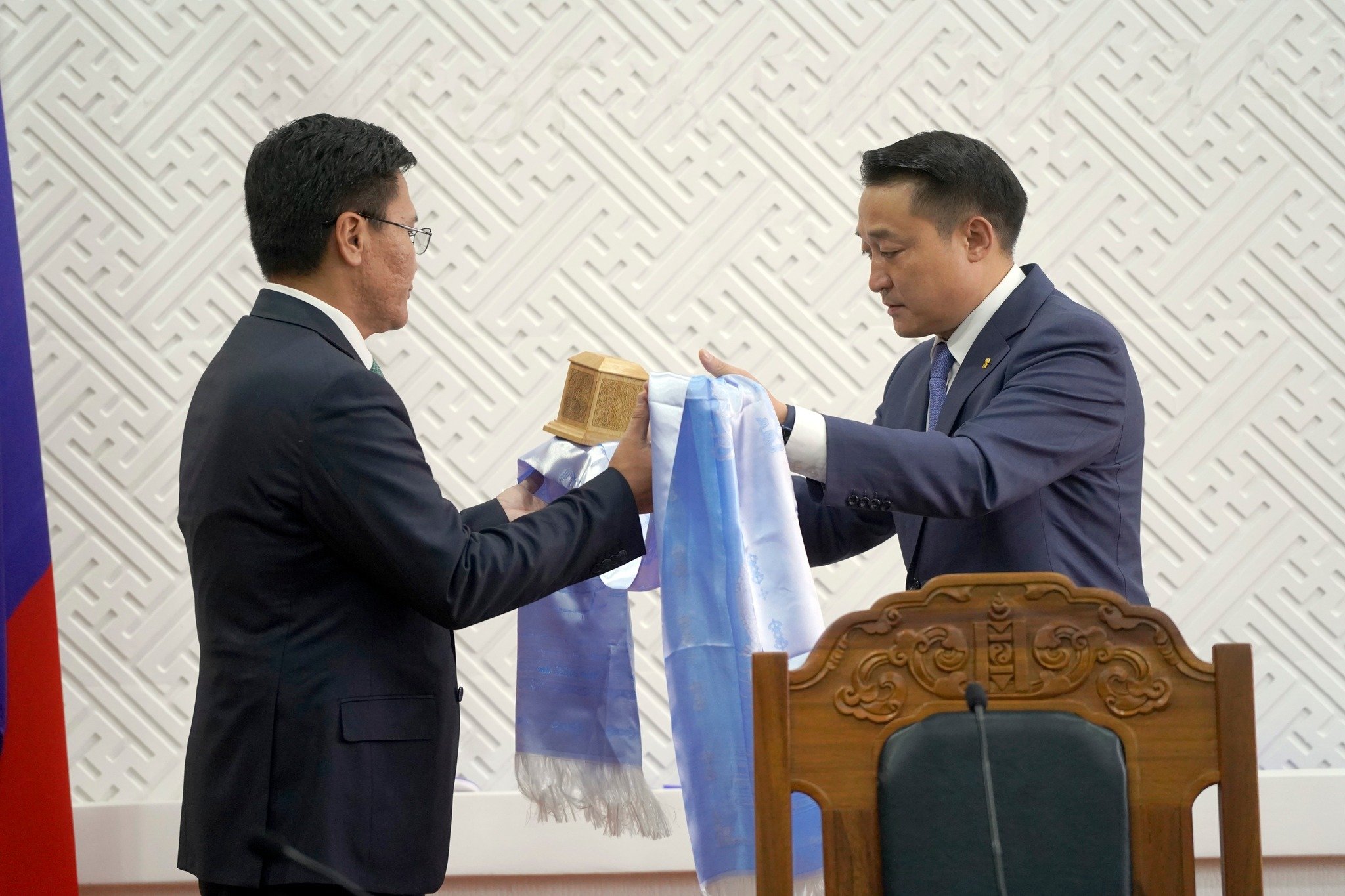 Шинээр томилогдсон сайд өнөөдөр тангаргаа өргөж, Монгол Улсын сайд, Засгийн Газрын Хэрэг Эрхлэх газрын дарга Д.Амарбаясгалангаас тамгаа гардан авлаа.