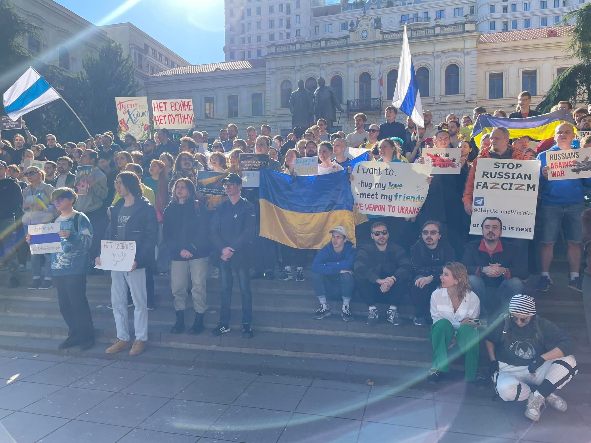 Гүржийн нийслэл Тбилиси хотод ням гарагт Украин дахь дайныг эсэргүүцсэн жагсаал болжээ. Энэ талаар СОТА телеграм суваг мэдээлснийг "Эрх чөлөө радио" дамжуулсан байна.