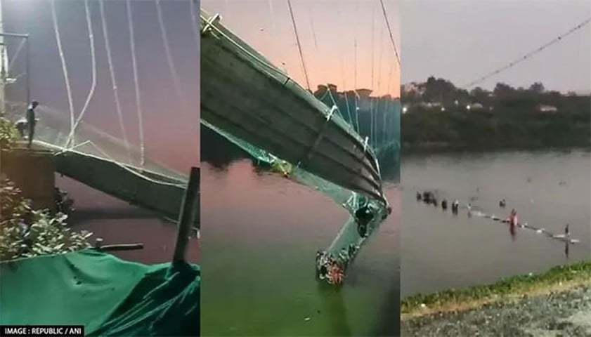 Морби хотод байх энэхүү дүүжин гүүр нь хүмүүс аялах дуртай гол газруудын нэг байсан бөгөөд 230 метр урттай гүүрийг XIX зуунд, Энэтхэг Британийн колонид байх үед барьсан аж. Дүүжин гүүр хагас жилийн хугацаанд засвартай байсан, дахин нээгдээд хэдхэн хонож байх үеэр ийнхүү баярын өдрүүд тохиож, хүмүүс олноор цугласан үед гүүр нурж, 90 хүн амиа алдсан байна.