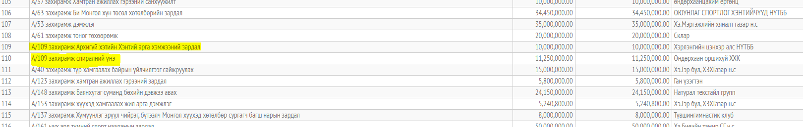 Төрийн өндөрлөгүүдийн төрсөн нутаг Хэнтий аймагт сүүлийн жилүүдэд төсвийн мөнгөөр "туйлж" буй. Хамгийн их төсвийг захиран зарцуулах эрхтэй тус аймагт өнгөрсөн наймдугаар сард гэхэд 225 хөрөнгө оруулалт, тендер, арга хэмжээнд хөрөнгө гаргажээ. Эдгээрээс анхаарал татаж байгаа шилжүүлэг нь Хэнтийн аймгийн А109 тоот захирамжийн дагуу хийгдсэн гүйлгээ байна.