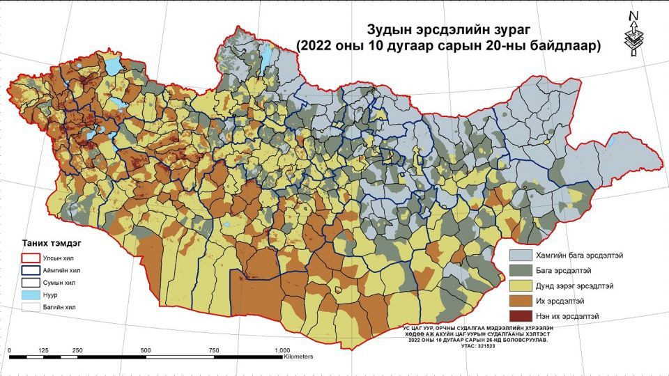 Ус цаг уур, орчны судалгаа мэдээллийн хүрээлэнгээс ган зуншлага, цас зуд, бэлчээртэй холбоотой газрын ажиглалтын болон хиймэл дагуулын олон төрлийн мэдээг нэгтгэн боловсруулж, зудын эрсдэлийн зураглалыг гаргасан байна.