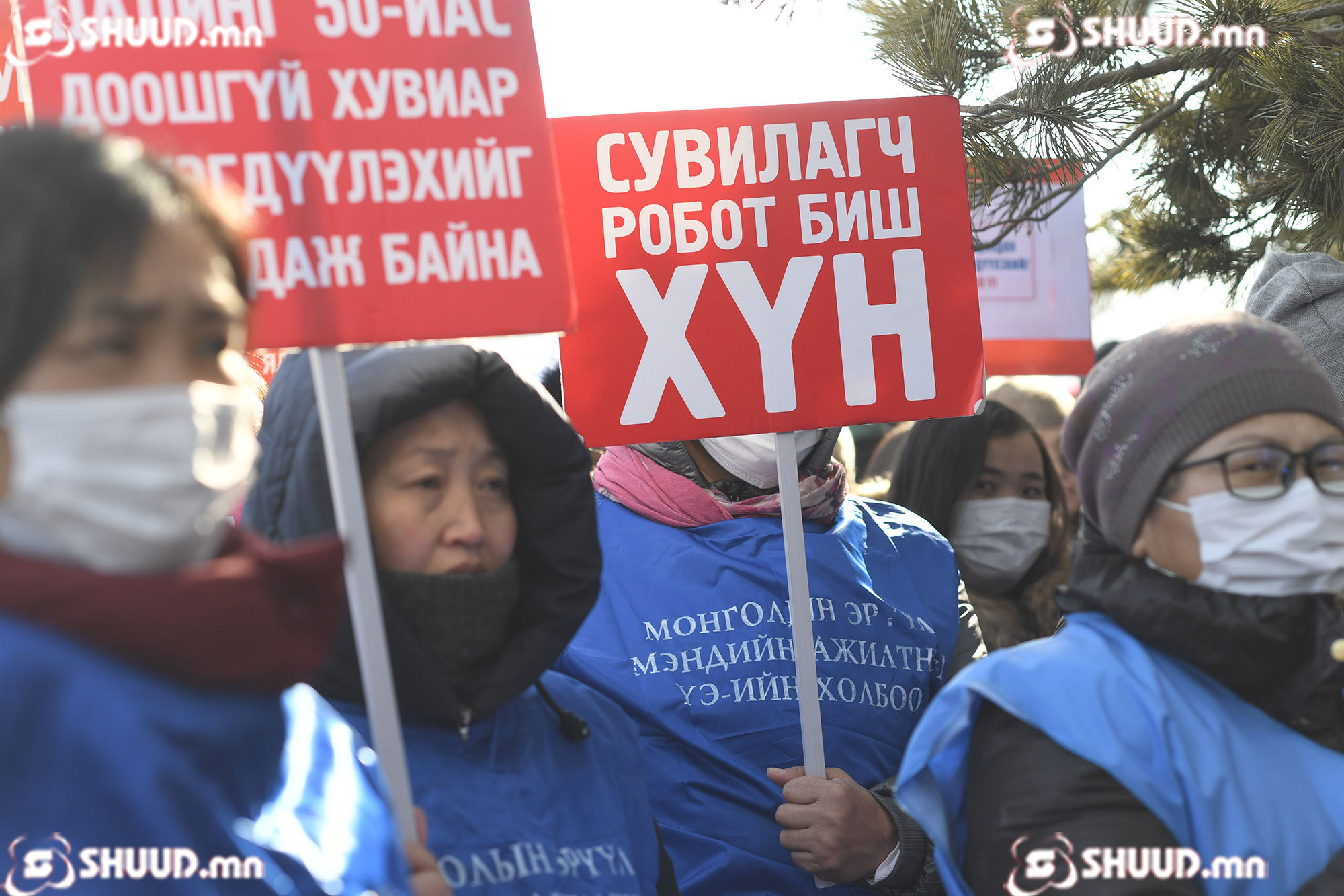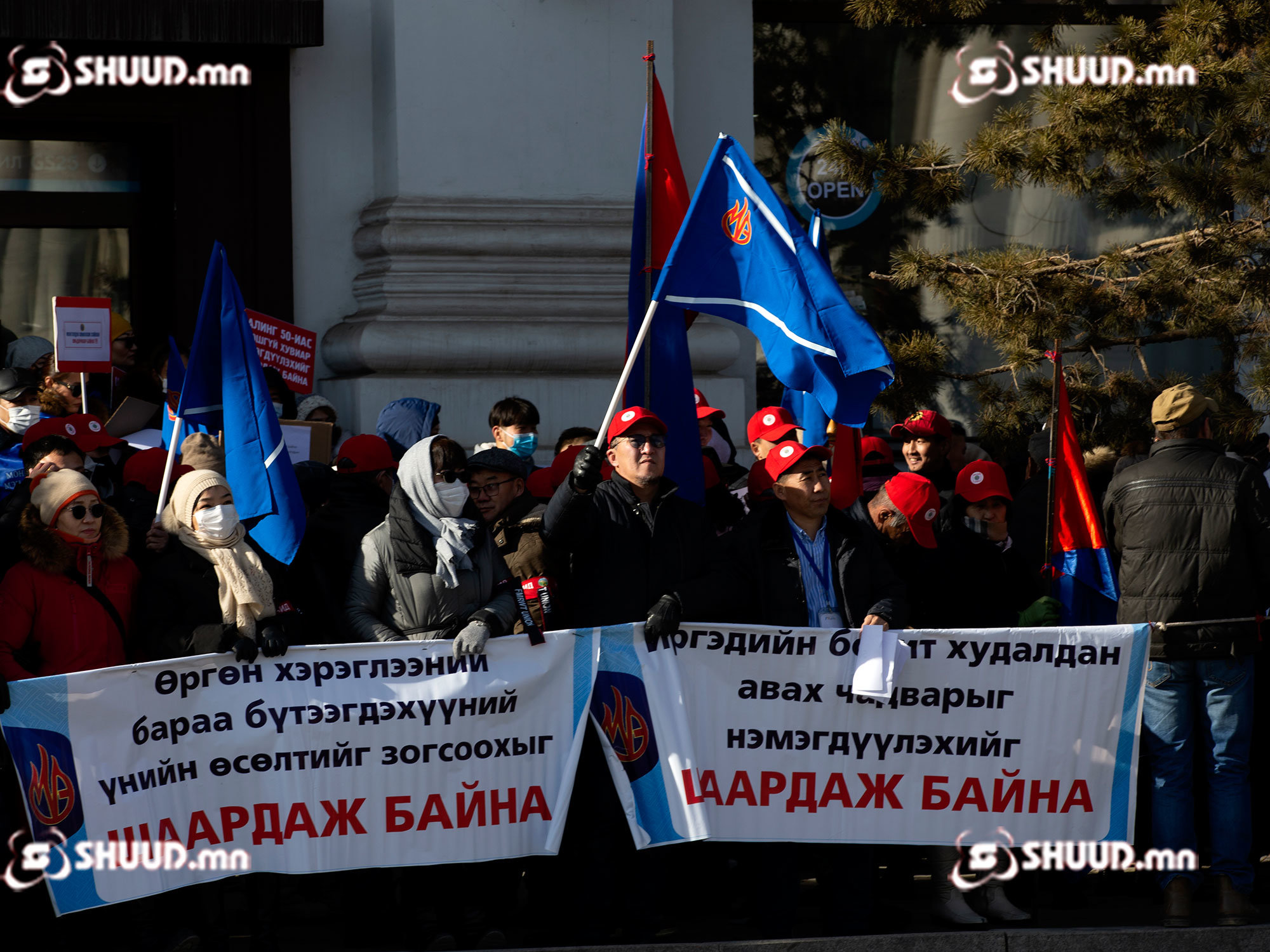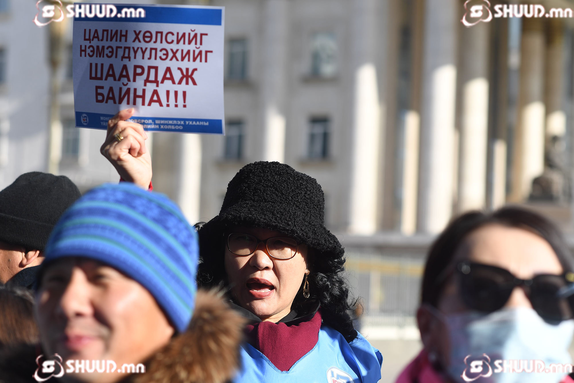 ФОТО: Цалин нэмэхийг шаардсан жагсагчид Төрийн ордныг гурав тойрлоо