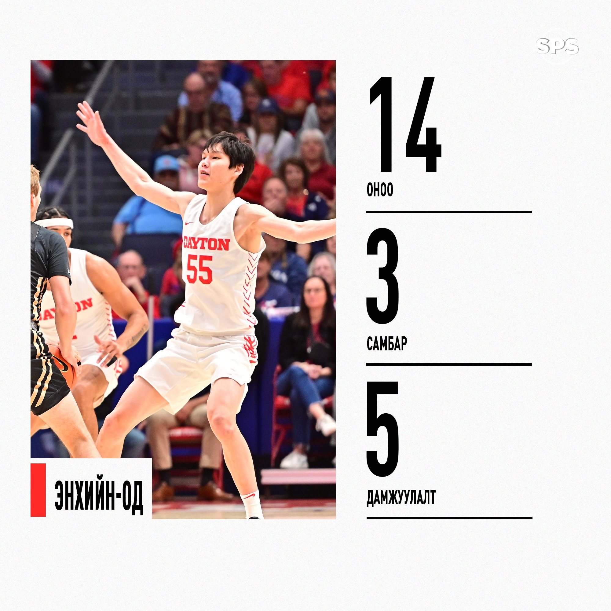 Өнөөдөр /2022.11.08/ гавьяат тамирчин Ц.Шаравжамцын хүү Энхийн-Од “Линденвүүд Лионс” багийн эсрэг тоглосон юм. Талбайн эзэн “Дэйтон Флайерс” баг 73:46-гаар хожсоноор энэ улирлын эхний хожлоо авлаа.