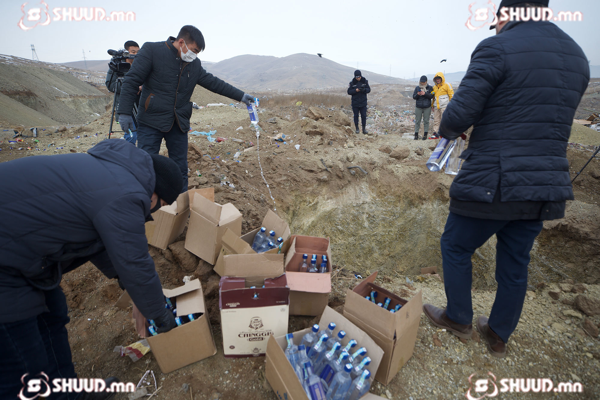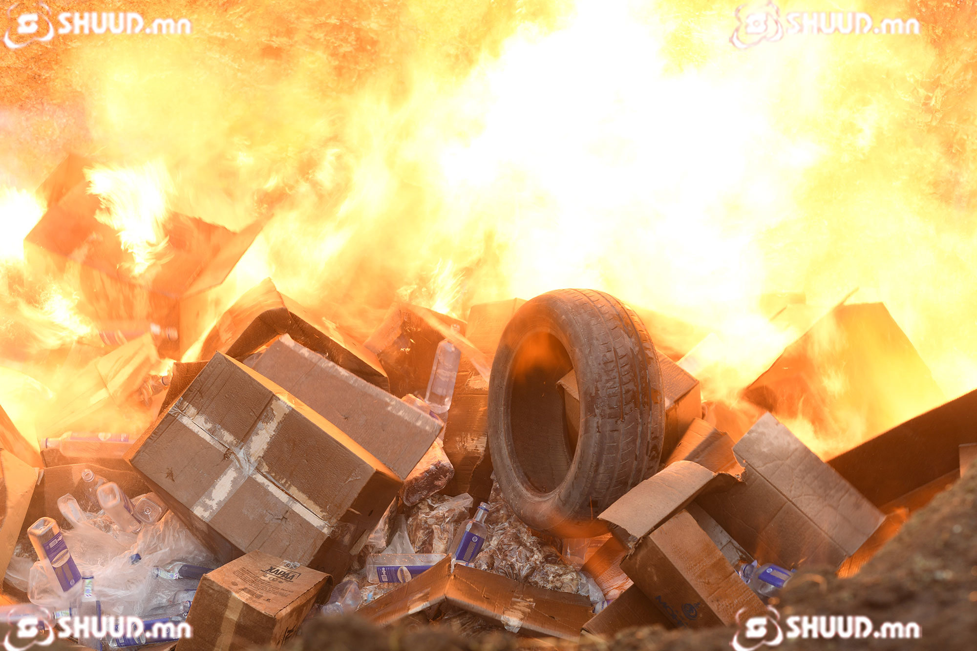 Мөн өнөөдөр мэргэжлийн хяналтын байгууллагын хурааж авсан архийг устгалаа.