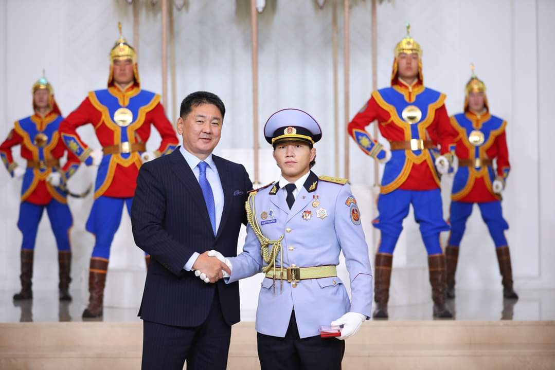 Бүгд Найрамдах Улс тунхагласны 98 жилийн ой, Их эзэн Чингис хааны мэндэлсний 860 жилийн ой, “Монгол бахархлын өдөр”-ийг тохиолдуулан Монгол Улсын Ерөнхийлөгч Ухнаагийн Хүрэлсүх зарлиг гарган тив, дэлхийн тэмцээнд онцгой амжилт гаргаж, эх орныхоо нэр алдрыг өндөрт өргөсөн тамирчид, багш, дасгалжуулагч, бүжгийн спортын хамтлагийг төрийн дээд цол, одонгоор шагналаа