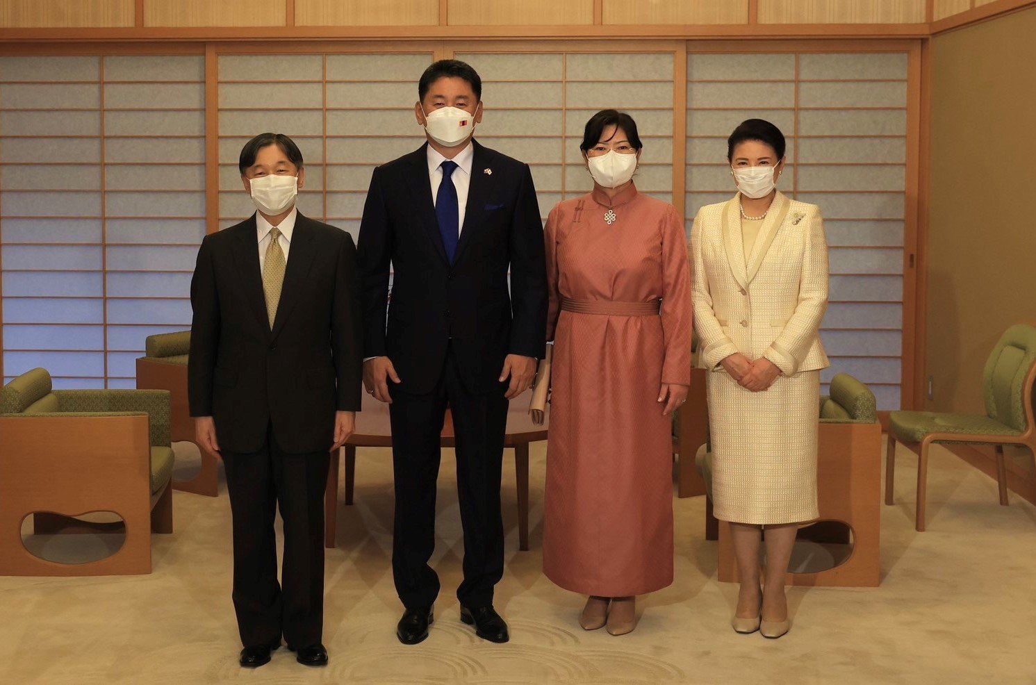 Монгол Улсын Ерөнхийлөгч Ухнаагийн Хүрэлсүх, гэргий Лувсандоржийн Болорцэцэгийн хамт Япон Улсын Цог Жавхлант Эзэн Хаан Нарүхито, Эрхэм Дээд Хатан Масако нарт 2022 оны 11 дүгээр сарын 30-ны өдөр Эзэн Хааны ордонд бараалхав.