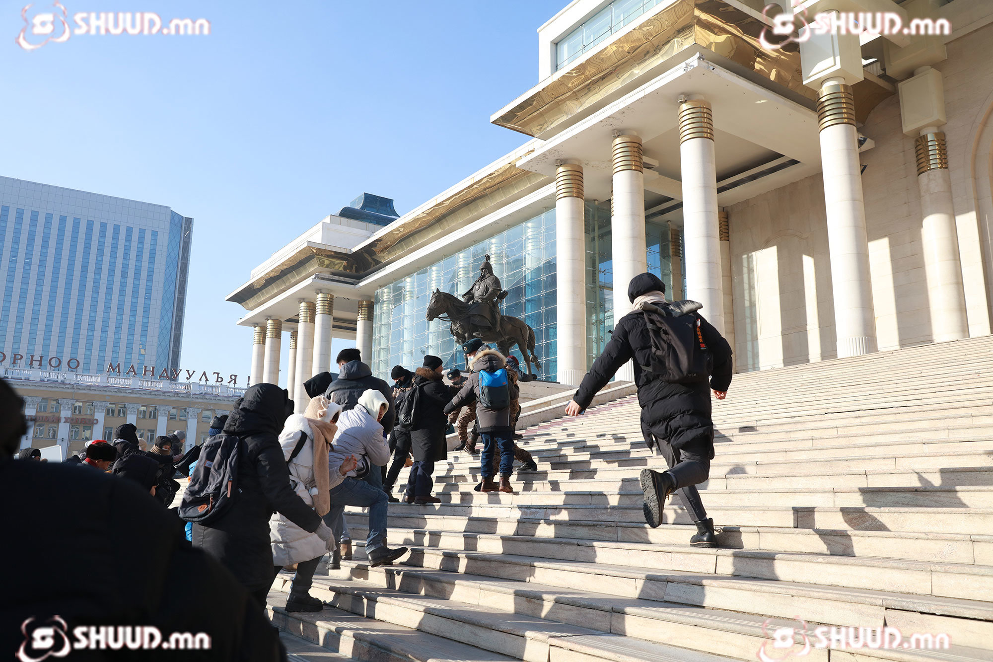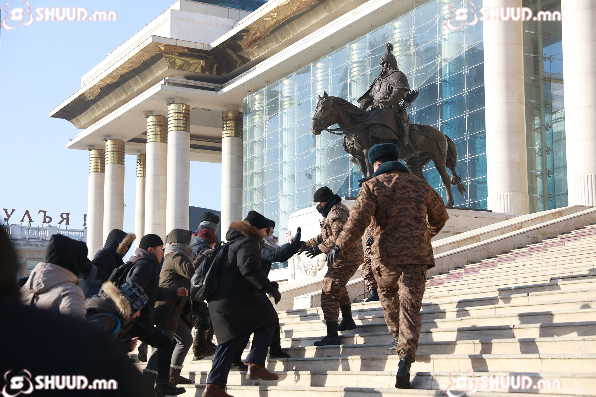 Төрийн ордон руу дайран орсон жагсагчдыг гаргасан. Төрийн тусгай албан хаагчдын шаардлагыг үл биелүүлэх, хүч хэрэглэн эсэргүүцэх нь Эрүүгийн хуульд заасан гэмт хэргийн шинжтэй үйлдэл бөгөөд зорчих эрхийг хязгаарлах, хорих ялтай байдаг юм.