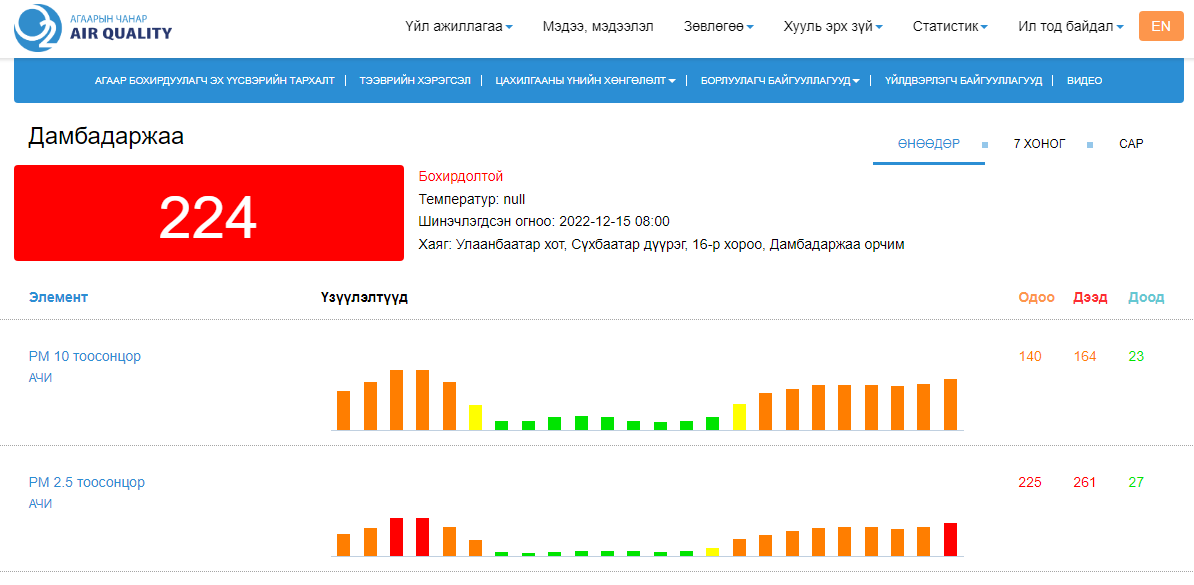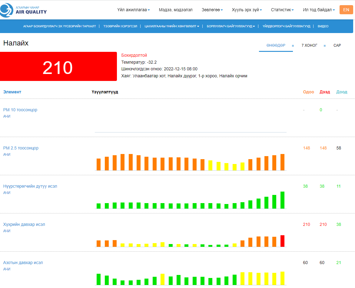 Агаарын чанарын дэлгэрэнгүй мэдээллийг эндээс харах боломжтой.
