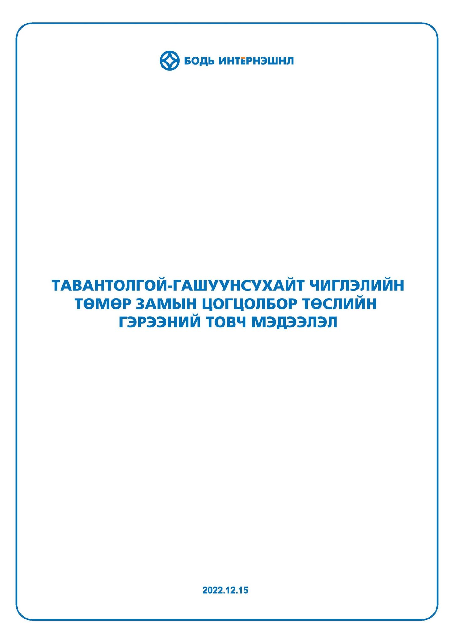- Бодь Интернэшнл ХХК нь Тавантолгой-Гашуунсухайт чиглэлийн төмөр замын бүтээн байгуулалтын нийт 6 багц ажлыг 1.005.6 сая ам.долларт багтаан 30 сарын хугацаанд гүйцэтгэх гэрээг Тавантолгой төмөр зам ХХК-тай байгуулсан.