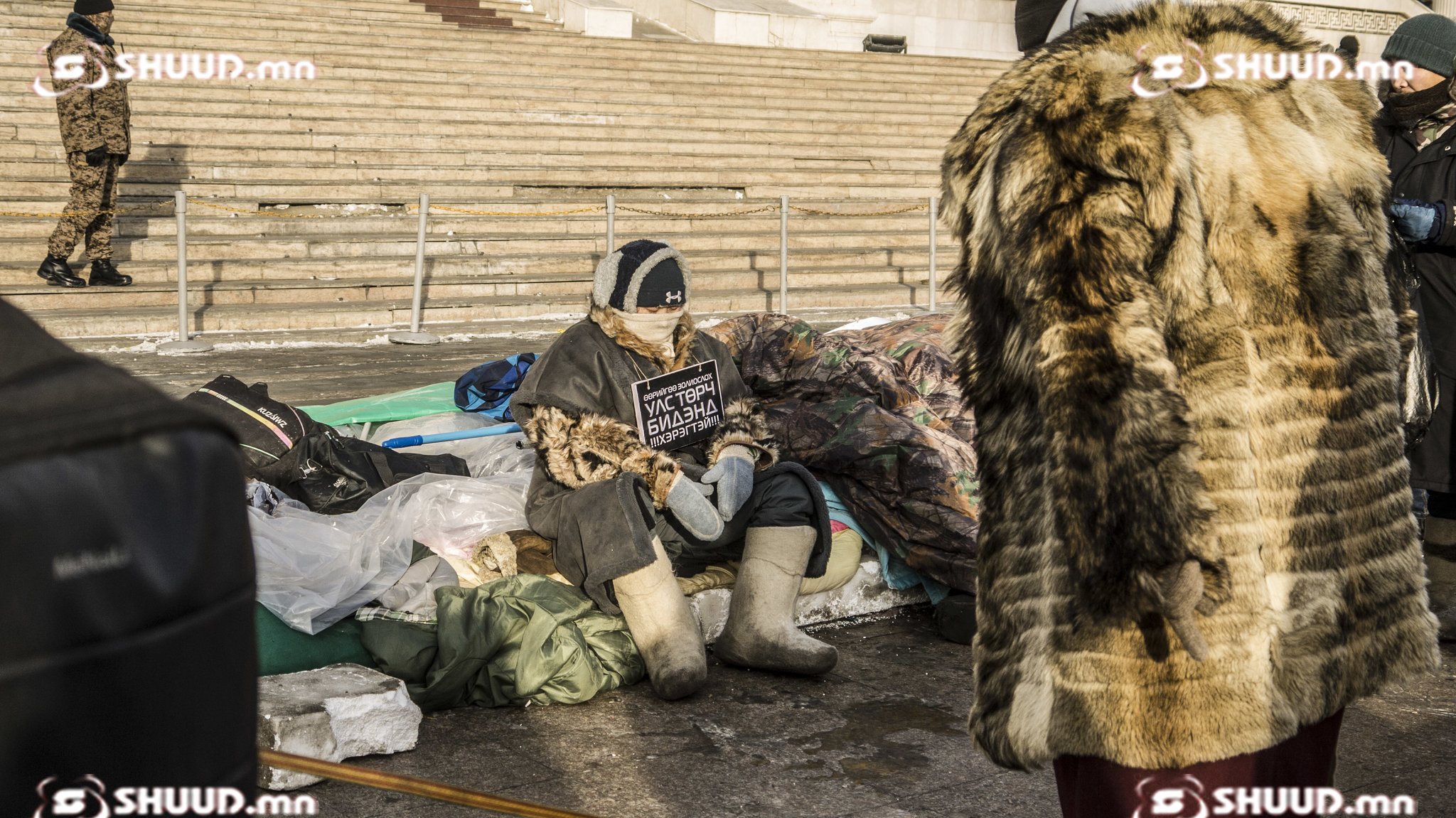 Жагсагчдийн төлөөлөл: “Миний хувьд таван өдрийн турш тасралтгүй жагсаалд оролцож байна. Бидний амьдралыг сайжруулахад зарцуулах ёстой улсын баялаг болох нүүрсийг дундаас нь завшин их хэмжээний мөнгийг хувьдаа зарцуулсан хүмүүст хуулийн хатуу хариуцлага тооцох ёстой. Засгийн газраас зарим нүүрсний хулгайчийг зарлалаа. Гэхдээ тэдэнд ямар нэгэн хариуцлага тооцож, яллаж, хөрөнгийг нь хураахгүй бол ямар ч үр дүн гарахгүй. Тиймээс хулгайчдын нэрсийг зарлалаа гээд бид тарахгүй. Жинхэнэ хулгайчдыг бүгдийг нь зарлаж, хуулиар яллах хүртэл нь жагсана” гэж бидэнд ярьсан юм. Тэрбээр хувиараа хөдөлмөр эрхлэгч учир өдөр бүр жагсаалд оролцоход ямар ч асуудалгүйгээ бидэнд тайлбарласан юм. Мөн тэрбээр ямар нэгэн тодорхой хариу өгөхгүй бол тэмцлийн хурц хэлбэрт шилжихээ илэрхийлсэн юм.