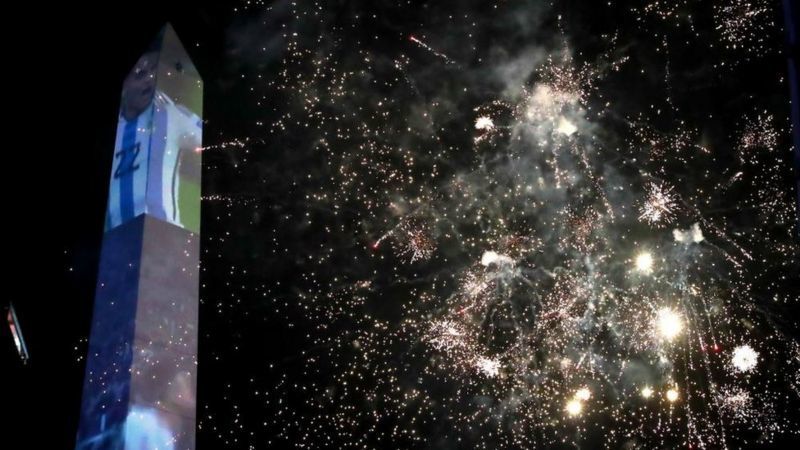 Шөнө хүмүүсийн тоо улам нэмэгдэж, баяр тэмдэглэхээр гарч ирсэн хүмүүс гудамжуудыг бүхэлд нь бүрхсэн байна. Мөн цугласан олон 1986 онд шигшээ багаа ялалтад хүргэсэн Диего Марадонагийн дурсгалыг хүндэтгэжээ.