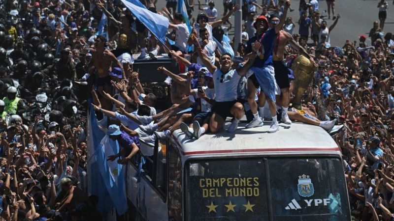 Хөлбөмбөгийн дэлхийн аварга шалгаруулах тэмцээний цомыг хүртсэн Аргентины баг мягмар гарагт эх орондоо очжээ. Аргентины Засгийн газар мягмар гарагийг бүх нийтийн амралтын өдөр болгон зарлаж, улс даяар үндэснийхээ багийн ялалтыг тэмдэглэсэн байна.