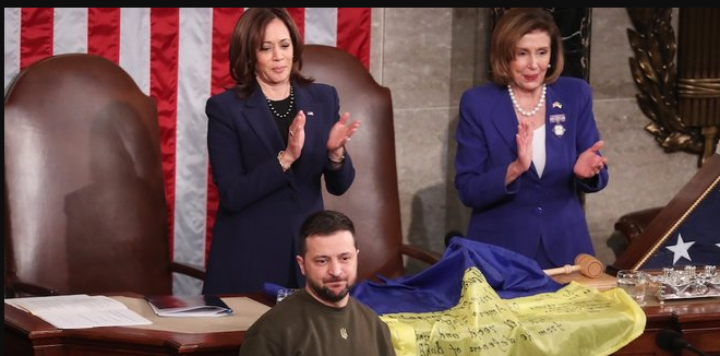 Украины Ерөнхийлөгч Володимир Зеленский АНУ-д айлчилж байна. Тэрбээр айлчлалынхаа үеэр Байдентай уулзаж, дараа нь АНУ-ын Конгресст үг хэлсэн юм. Зеленский Конгресст үг хэлснийхээ дараа Украины далбааг Америкийн конгрессын гишүүдэд бэлэглэсэн талаар Вашингтон Пост мэдээлжээ.