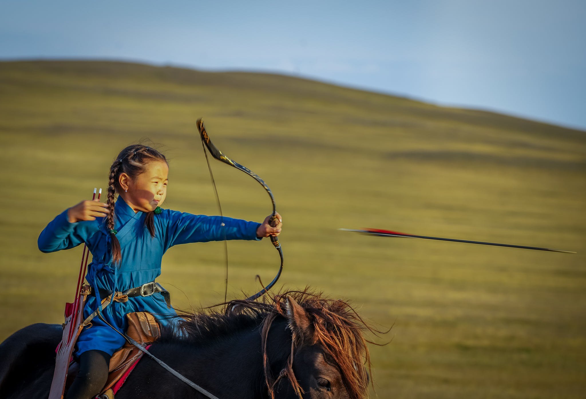 - Эмэгтэй хүүхэд морь унаад, нум сум харвах их тэсвэр тэвчээр бас зориг харагдаж байна. Нум сум харвахад ямар чадвартай байх ёстой юм бэ?