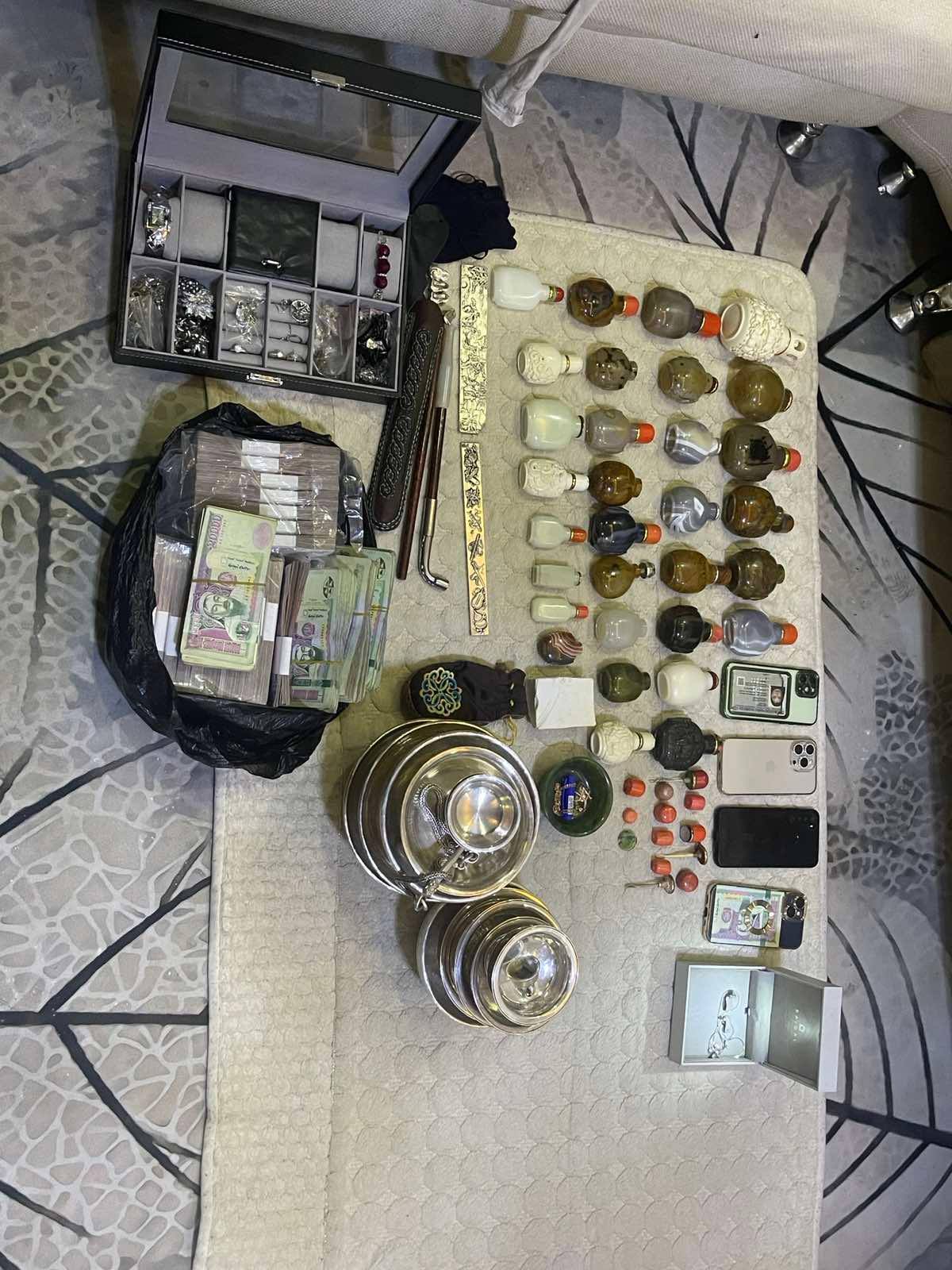 Мөрдөн шалгах ажиллагааны явцад тэдний гэмт хэрэг үйлдэхдээ ашиглаж байсан тээврийн хэрэгслүүдээс 17 сая төгрөг, “Ноён сэврэй” хийцийн 10 ширхэг мөнгөн аяга, 45 ширхэг хөөрөг, 11 ширхэг хөөргөний шүрэн толгой, 15 ширхэг хөөргөний даалин, металл хайгч, мөнгөн хэт хутга зэрэг эд зүйлсийг хураасан бөгөөд дээрх этгээдүүд нь хууль бус үйлдэл, хулгайлсан эд хөрөнгөө нуун далдлах, гэмт хэргийн улмаас олсон орлогыг хууль ёсны харагдуулах зорилгоор Улаанбаатар хотод паб, караоке түрээсэлж, мөнгө угаах гэмт хэрэг үйлдэх замаар Сонгинохайрхан дүүргийн нутаг дэвсгэрт амины орон сууц барьсан, тээврийн хэрэгсэл худалдан авсан, гэр бүлийн гишүүдийг гадаад улс руу явуулахаар виз мэдүүлсэн болох нь тогтоогдож байгаа бөгөөд шалгалтын ажиллагааг үргэлжлүүлж байна.