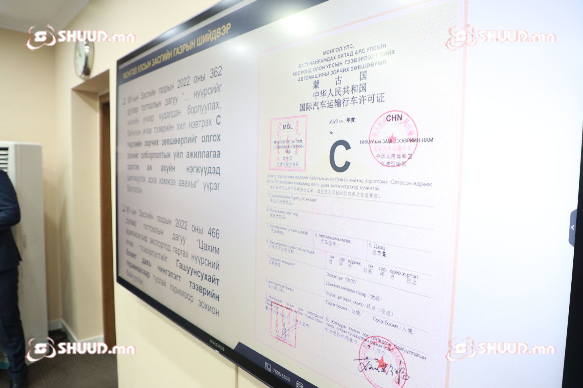 Засгийн газраас экспортод гарч байгаа нүүрсийг хил нөхцлөөр зарах шийдвэр гаргасан. Үүнтэй холбогдуулан эхний арга хэмжээ Улс хоорондын ачаа тээврийн С зөвшөөрлийн талаар мэдээлэл хийлээ.