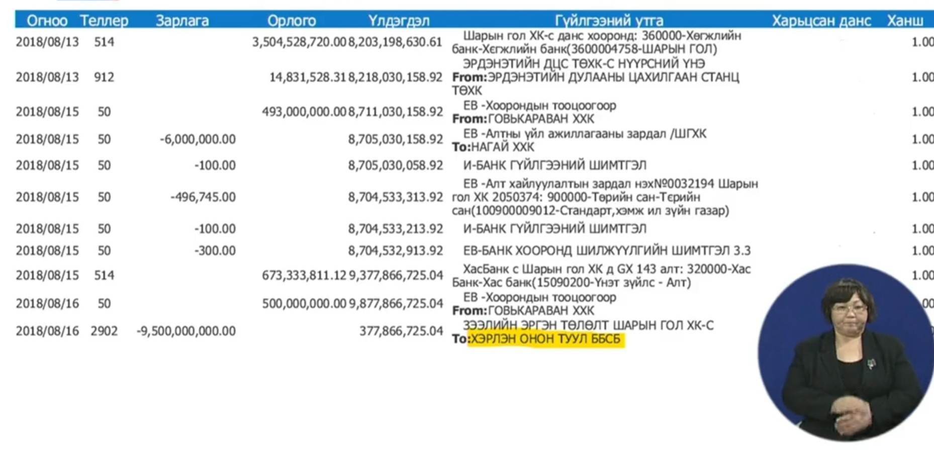 "Шарын гол" компани Хөгжлийн банкнаас авсан зээлээсээ 4 тэрбум төгрөгийг ББСБ руу шилжүүлжээ