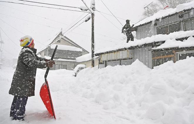 Япон тэнгисийн эрэг орчмын нутгуудад нэгдүгээр сарын 24-нөөс эхлэн их цас орсон бөгөөд цаг агаар муудаж, замаар зорчиход хүндрэлтэй болсон тул олон километр үргэлжилсэн түгжрэл үүсчээ. Өнөөдөр Японд 60-80 см тунадас орохын дээр эрс хүйтэрнэ гэж цаг уурчид анхааруулсан байна.