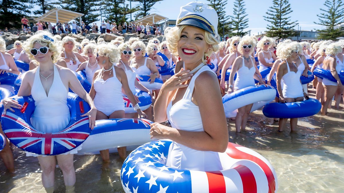 Австралийн Брайтон эрэгт жил бүр болдог “Marilyn Jetty” усанд сэлэлтийн тэмцээн энэ жил уламжлал ёсоор зохион байгуулагдсан бөгөөд тус тэмцээнд шаргал хиймэл үстэй, нарны шил, цагаан усны хувцас өмссөн хүмүүсээр дүүрэн байлаа.