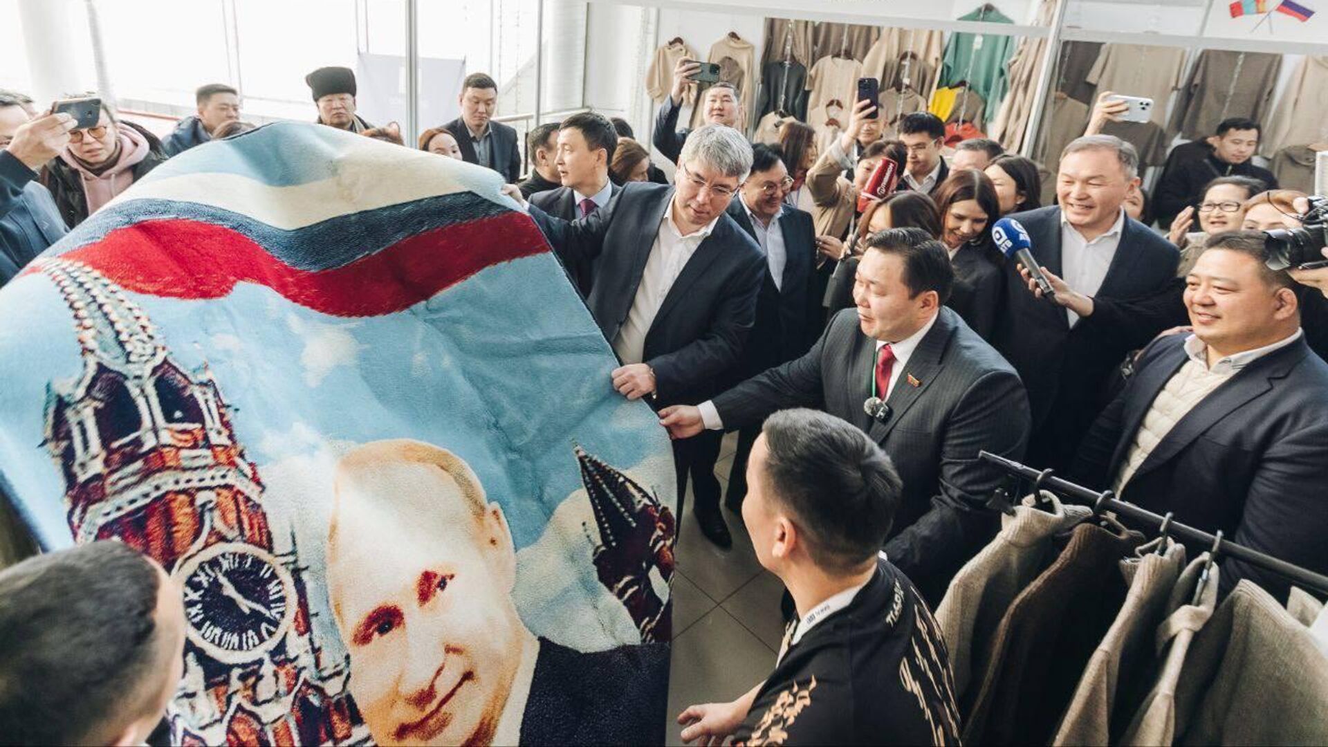 Оросын Ерөнхийлөгч Владимир Путиний хөрөг бүхий, Монголд үйлдвэрлэсэн хивсийг Буриадын тэргүүн Алексей Цыденов худалдан авсан талаар Буриадын Засгийн газрын Телеграм сувагт мэдээлжээ.