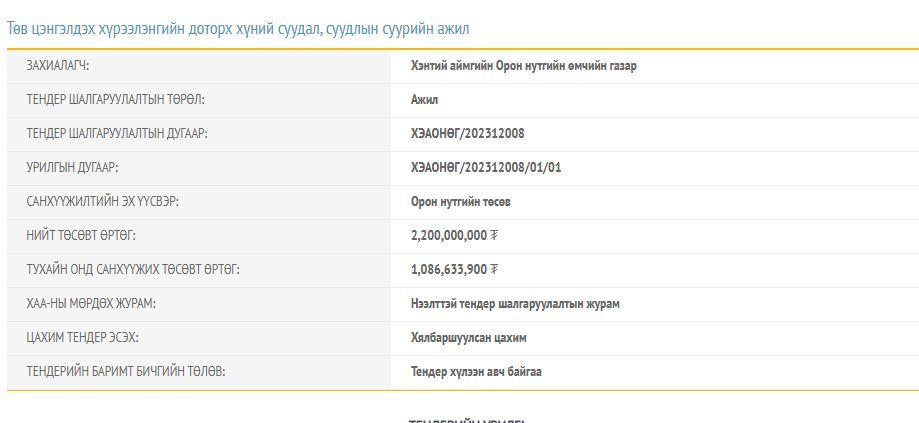 Энэ ажлын нийт төсөвт өртөг 2 тэрбум 200 сая төгрөг бөгөөд энэ онд Төв цэнгэлдэх хүрээлэнгийн суудал, суудлын суурийн ажил хийхэд нийт НЭГ тэрбум 86 сая төгрөг зарцуулахаар болсон байна. Ажил гүйцэтгэгч нь энэ ажлыг энэ оны зургадугаар сарын 30 гэхэд хүлээлгэж өгөх үүрэг хүлээж аж. Ийнхүү Төрийн өндөрлөгүүд нутгийнхаа 100 жилийг шинэчлэн зассан Төв цэнгэлдэхдээ хийх ажлаа эхлүүлээд байна.