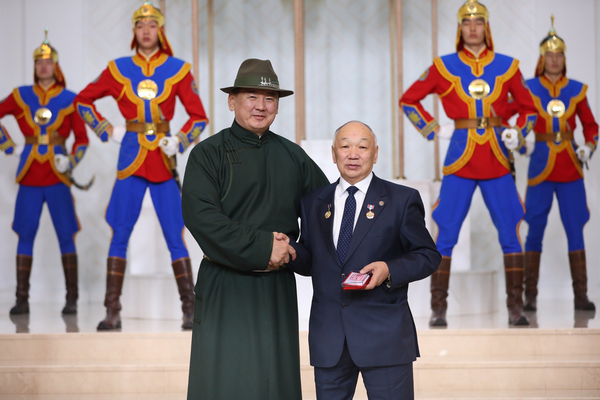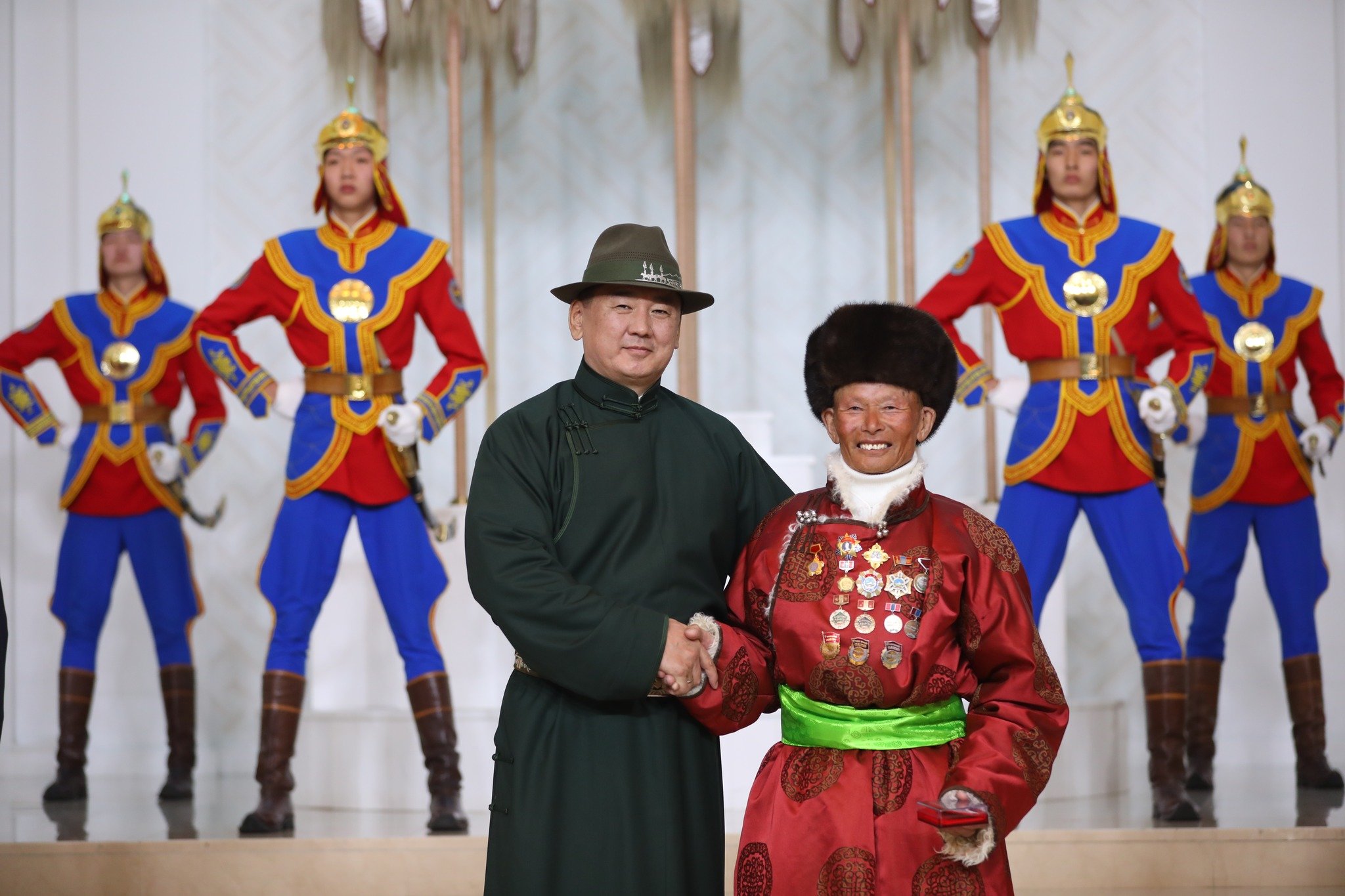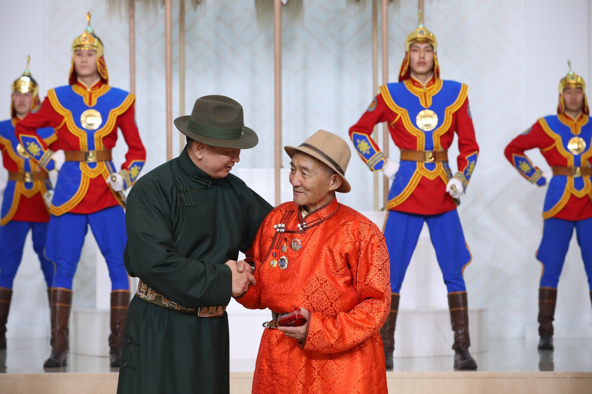 XVII жарны "Үзэсгэлэн болгогч" хэмээх Усан туулай жилийн сар шинийн баярыг тохиолдуулан Монгол Улсын Ерөнхийлөгч У.Хүрэлсүх төрийн дээд цол, одон, медаль гардууллаа.